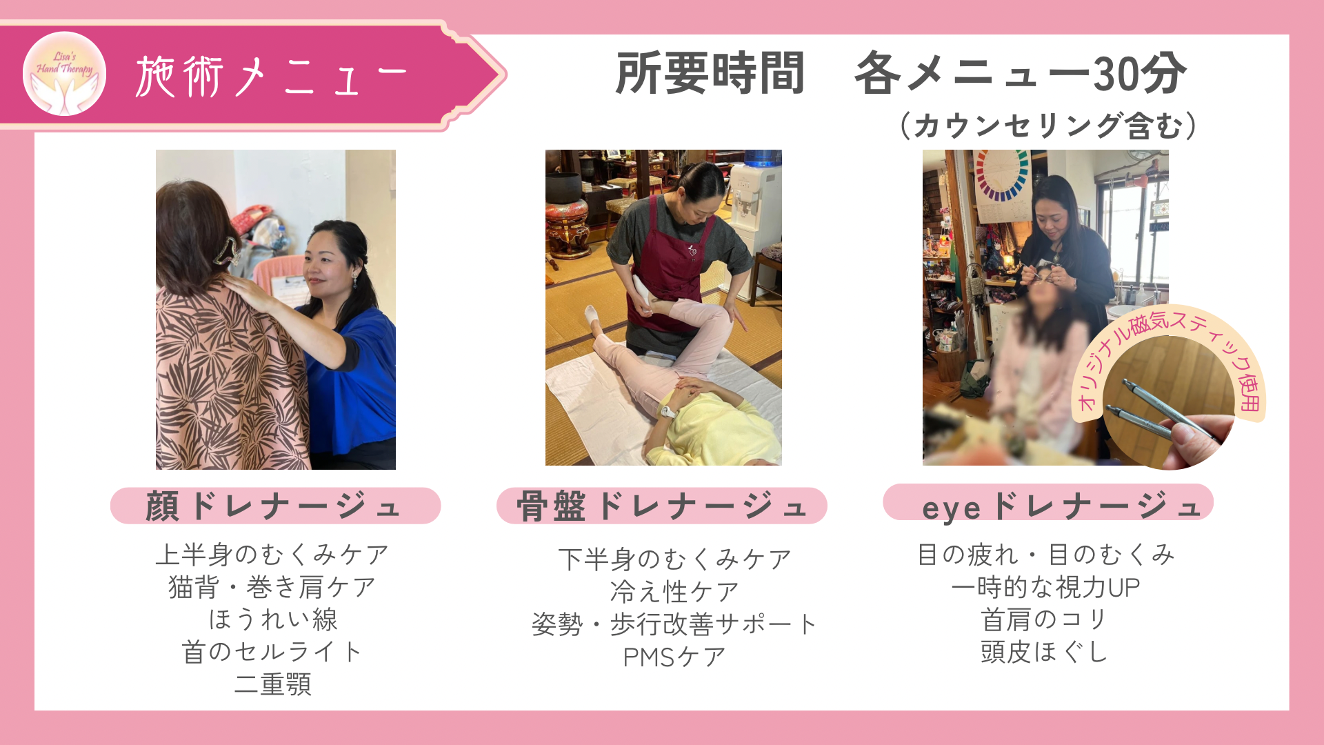 疲れ目・かすみ目・目元のむくみ・首肩こり・頭皮の硬さでお困りの方に