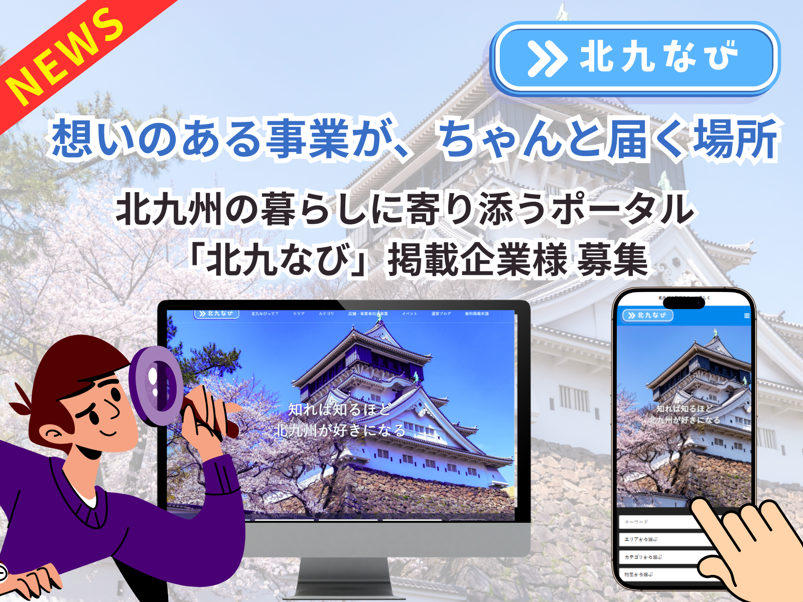 北九なびにあなたの事業を掲載して、認知拡大・売上アップの仕組みを一緒に育てませんか?
