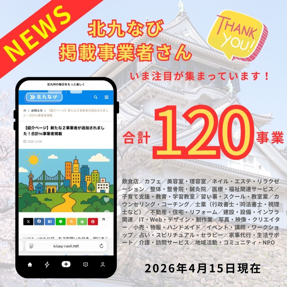 ・北九州市内のサービス業・小売業・教室・専門職など、複数事業者が掲載中