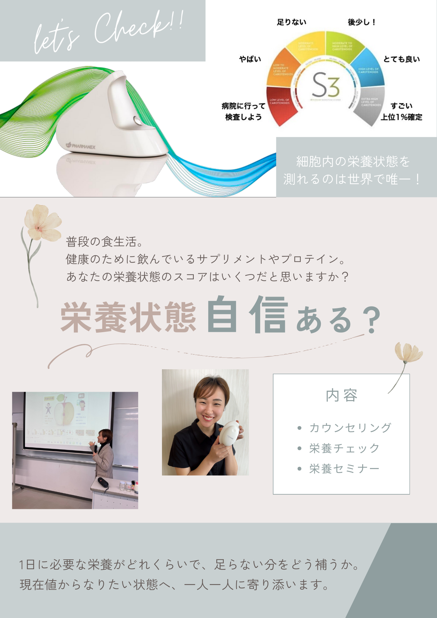 栄養状態を測ってみたいだけの方でも大丈夫です。