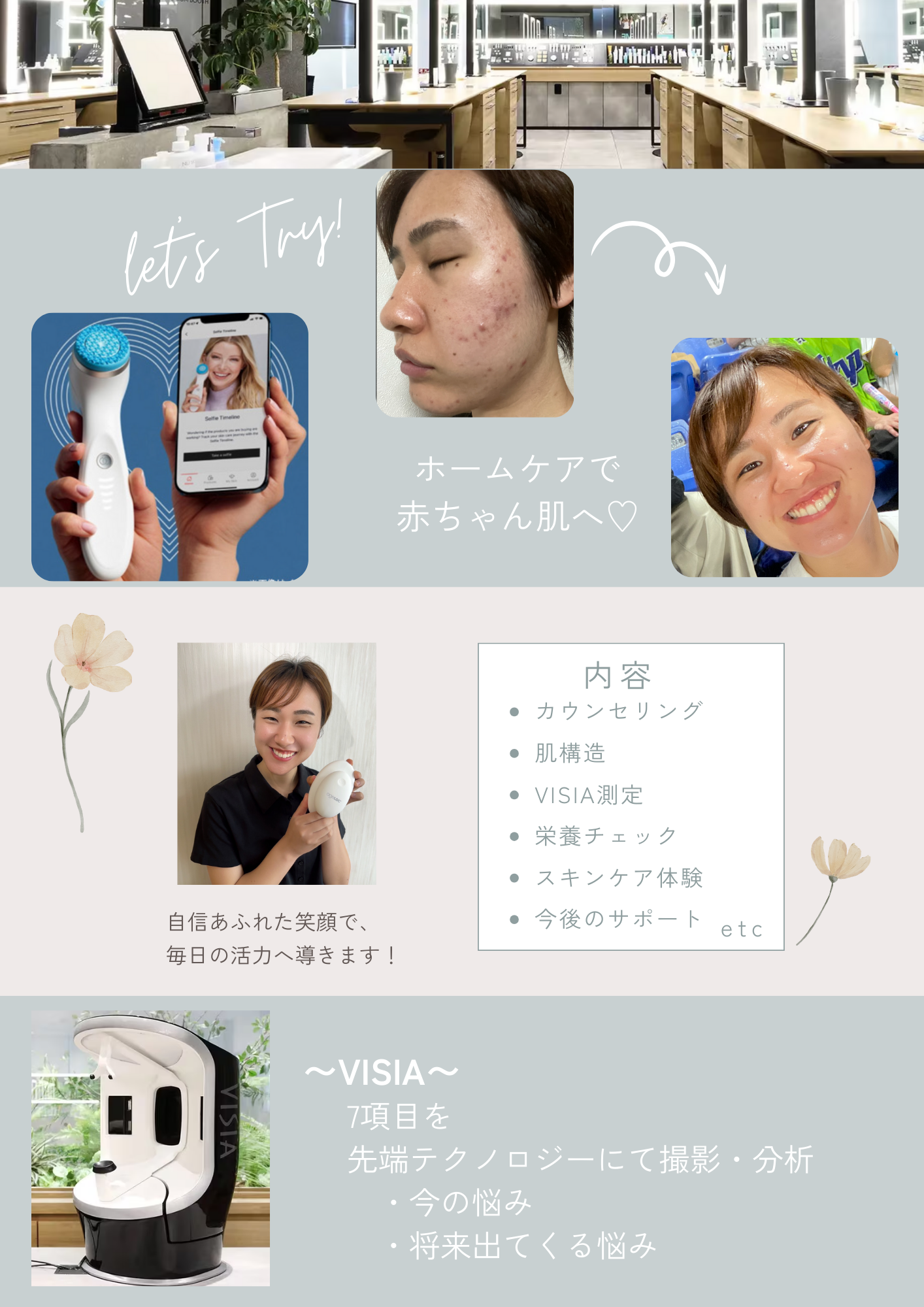 ⭐️正しいスキンケアからあなたのお悩みまでの 「カウンセリング〜サポート」をいたします。