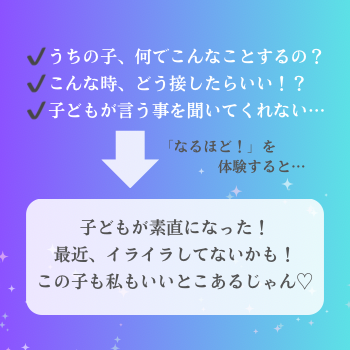 ・「子供の個性だったり気質、特性を知ることで、困っていた接し方や声のかけかたを知る事ができました!」(年長男の子ママ)