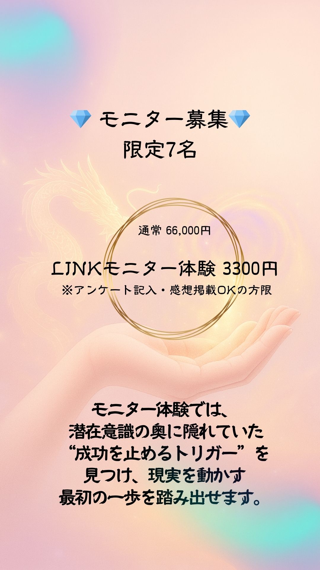 公式LINE 『LINKまぶいモニター』希望と送ってください。