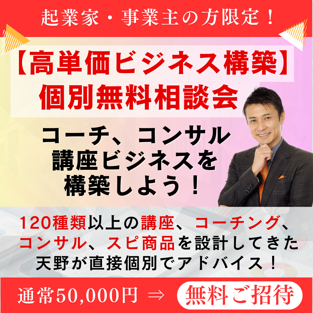 安い商品の数を売るのではなく、コーチング、コンサルティング、講座など、高単価サービスの構築と集客に特化した内容になります。