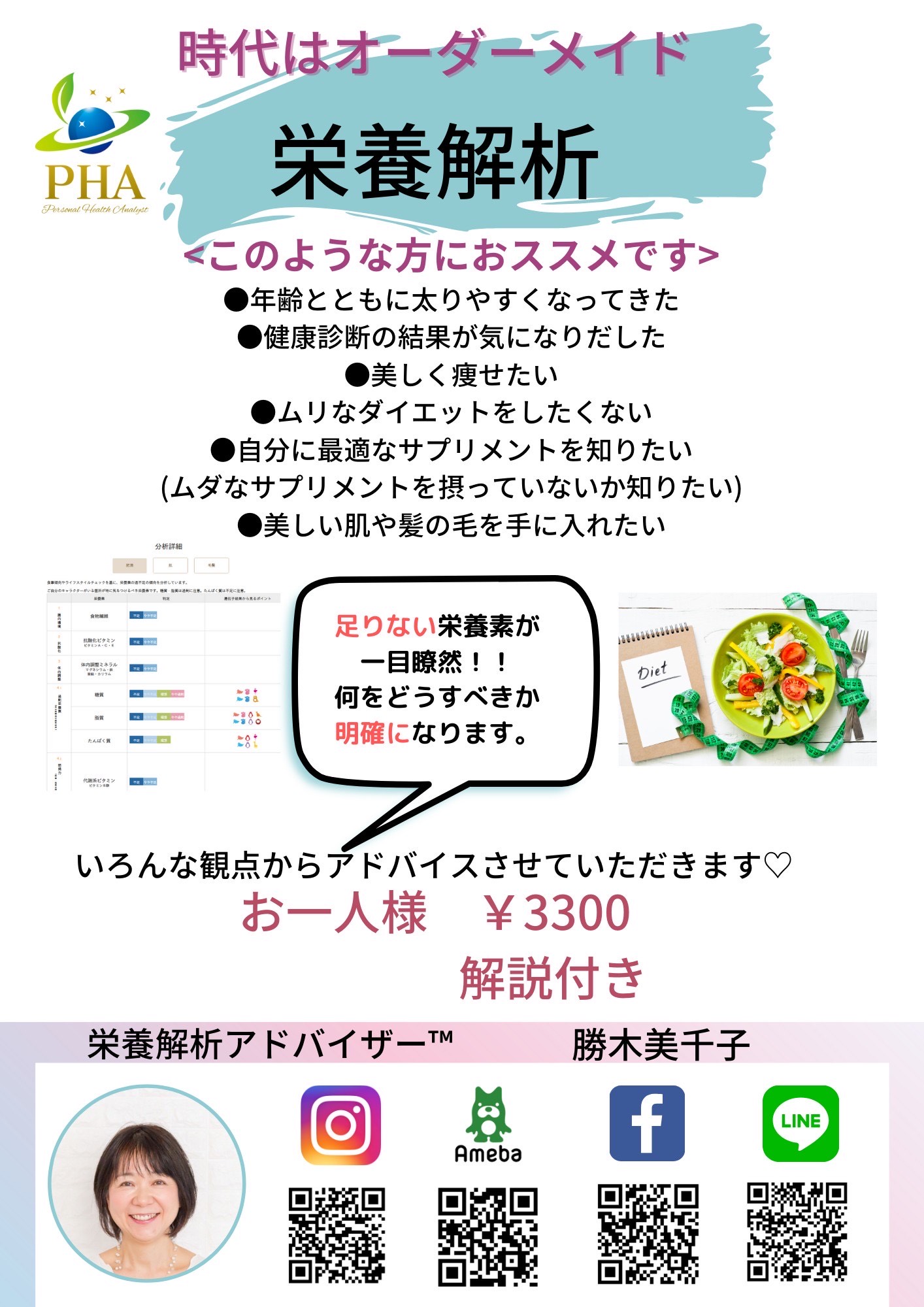 ☑サプリを扱っているMLMをされている方で、ご自身が栄養解析を今後する側として体験したい方