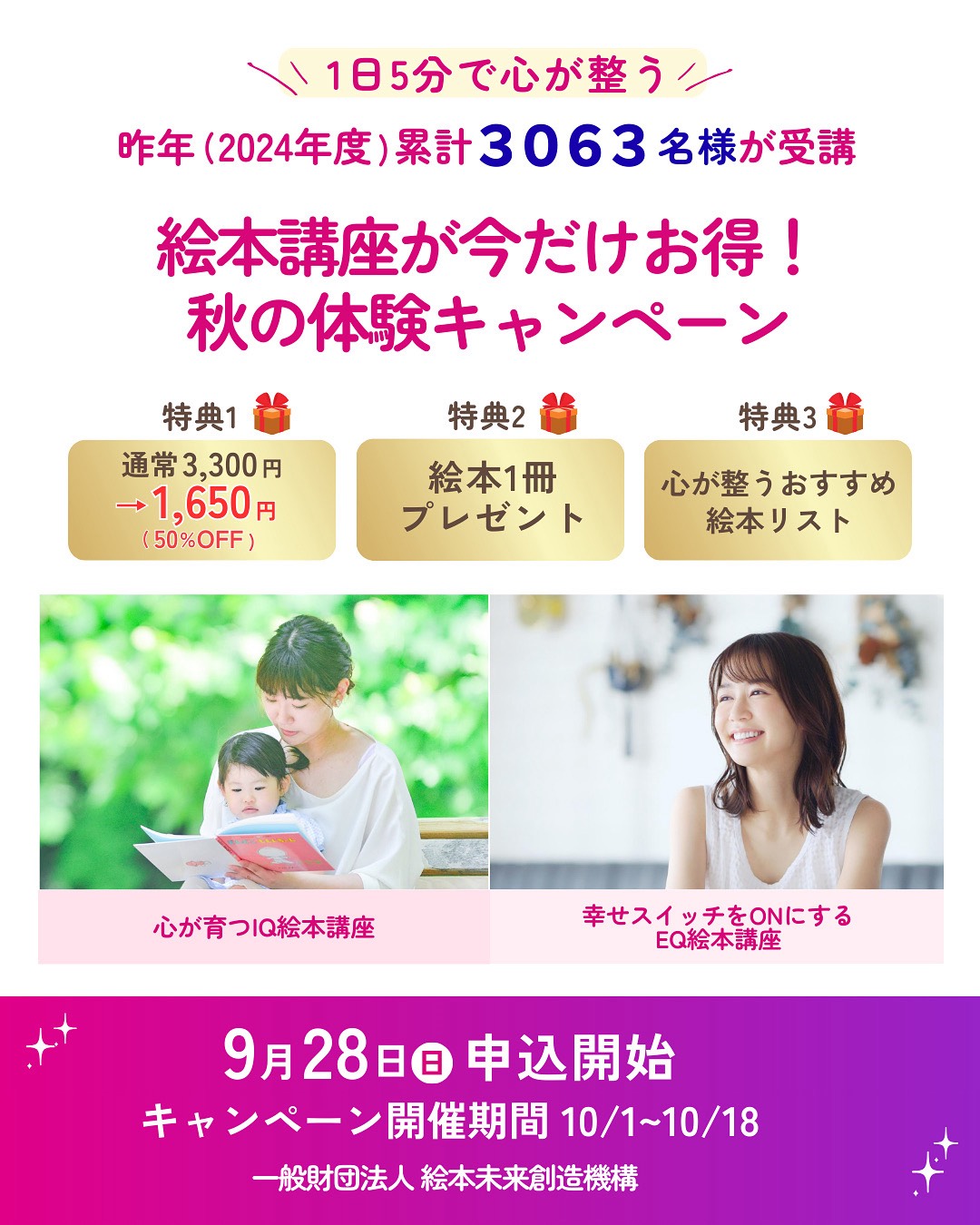 幸せスイッチをオンにする絵本講座体験会受講者申込み