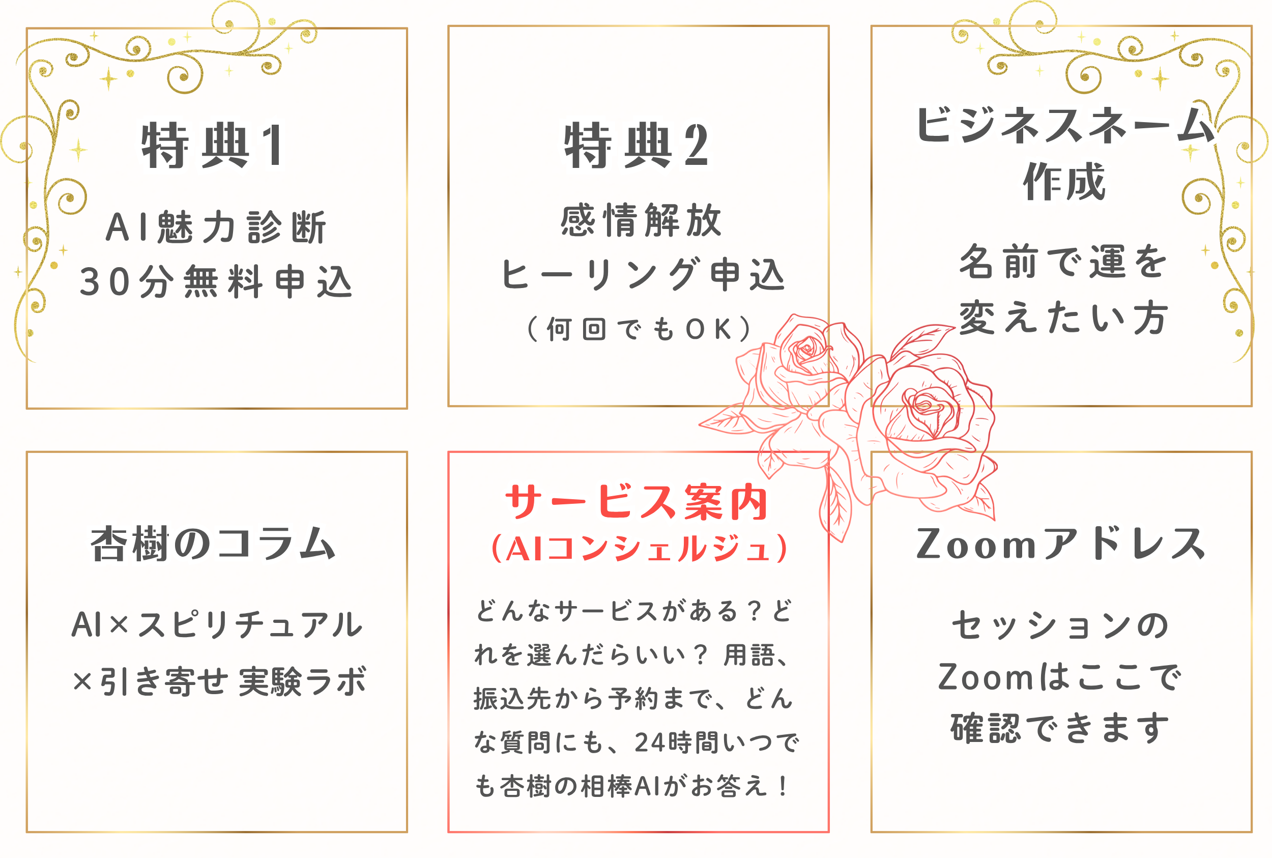 杏樹のLINE公式のリッチメニュー「サービス案内」がAIコンシェルジュになっています。