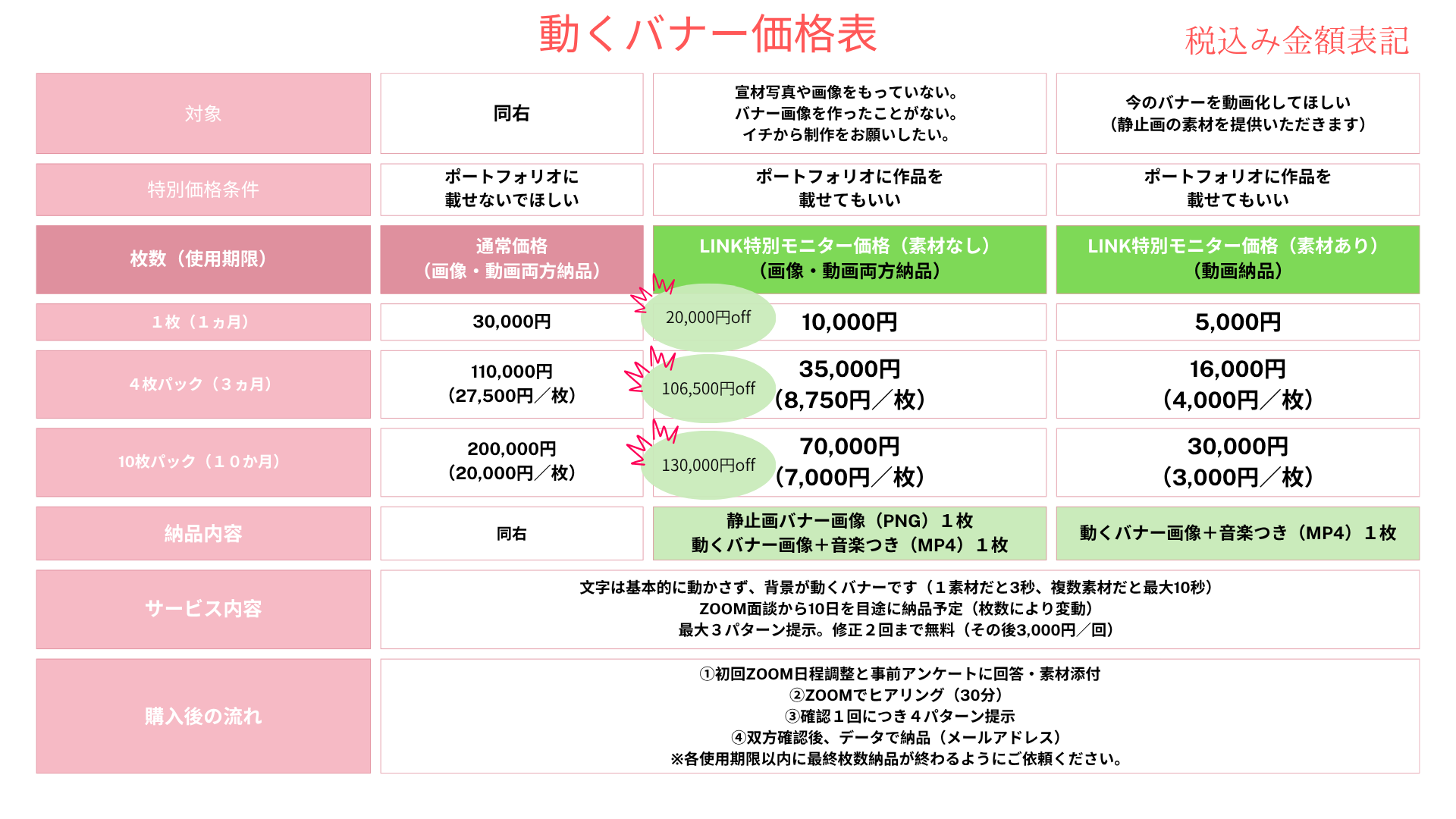 ★LINK特別モニター価格!素材がなくバナー制作からお願いしたい方(画像・動画両方納品)