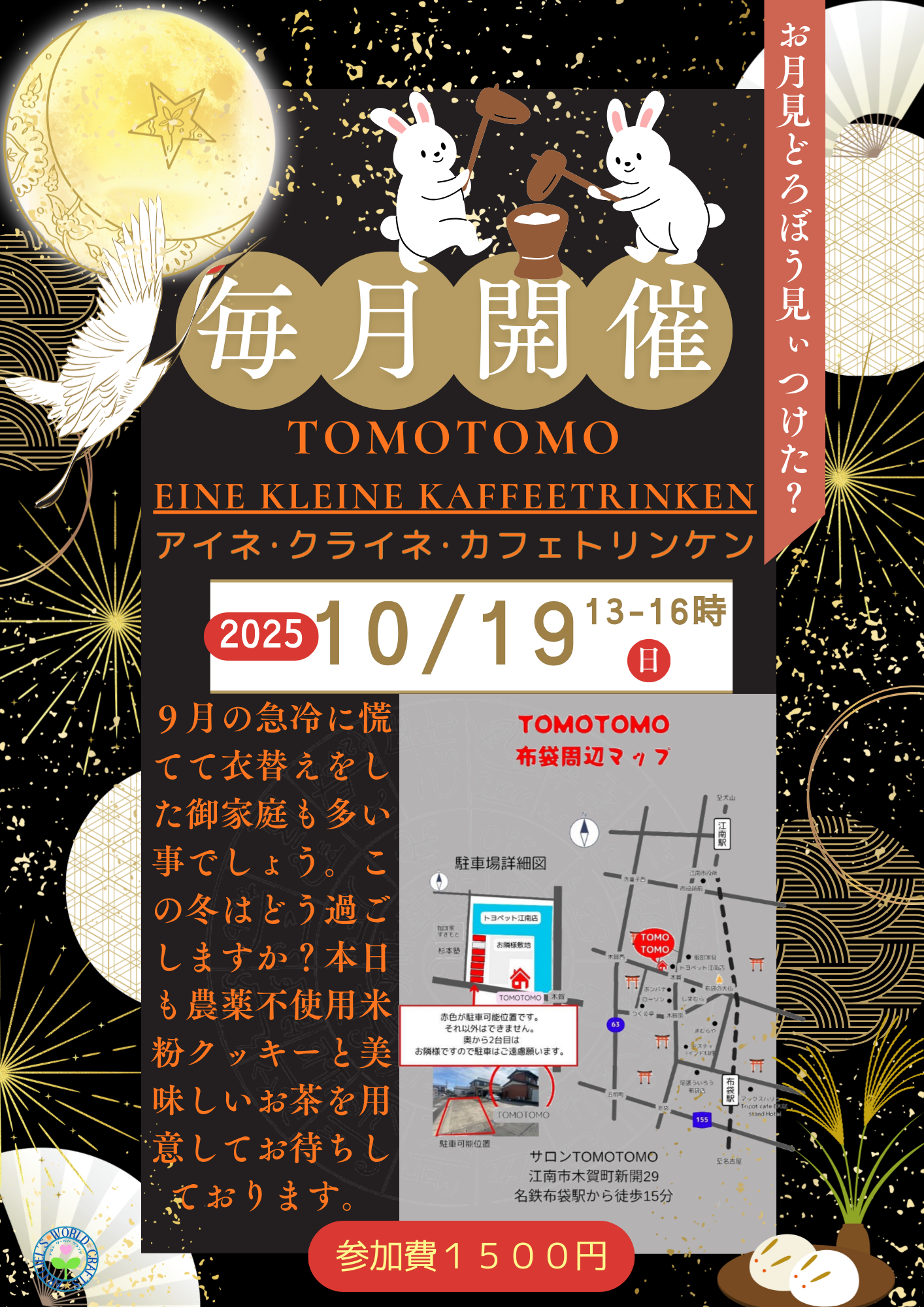 毎月だいたい第二土曜日(次回は10月19日 日曜日)、愛知県江南市にありますTOMOTOMOサロンにて、栽培中農薬不使用の米粉を使ったクッキーと、煎茶道師範が選んだお茶を楽しみながらのんびりゆったりする会です☕TRPGやTV・アナログゲームを研究・実践してきた夫セレクトのカードゲーム・ボードゲームも用意しています🎮
