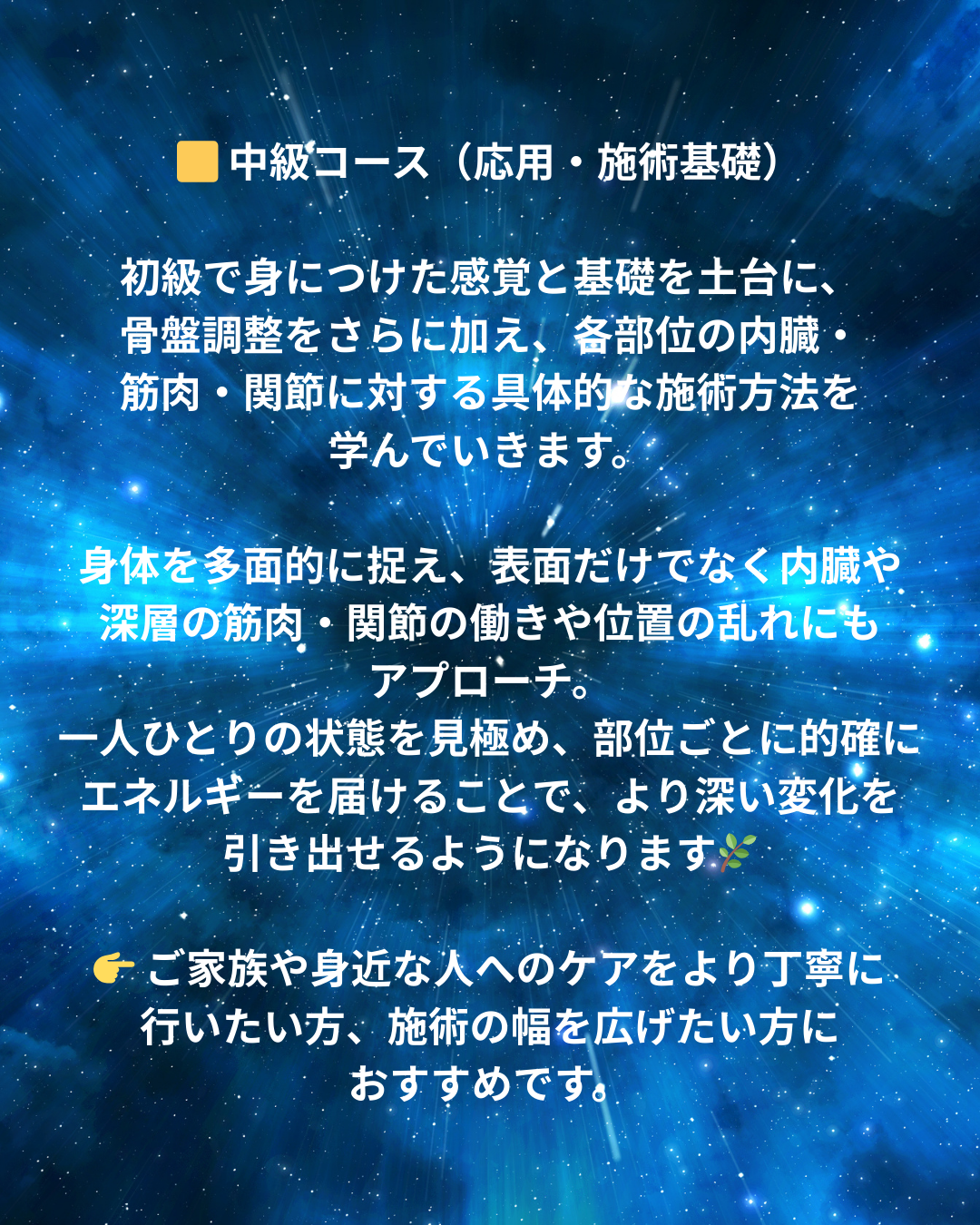 表層だけでなく、内臓や深層の筋肉・関節にもアプローチし、より深い変化を引き出せる技術を身につけます。
