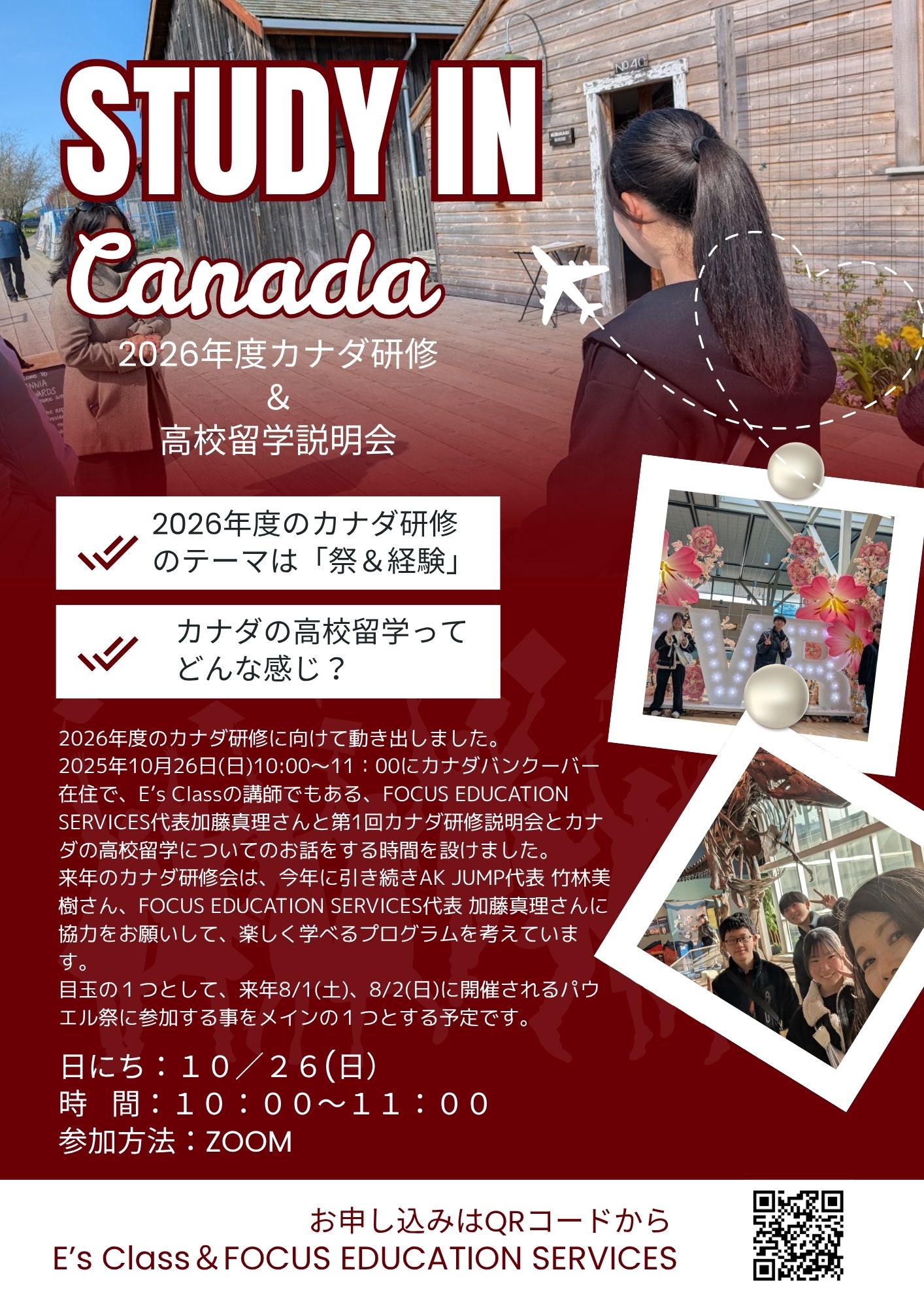 2025年3月28日~4月3日、中学生3人をつれてカナダ研修へ行きました。10万円/人の奨学金を支給。詳しくはホームページ、カナダ研修報告の動画をご覧ください。