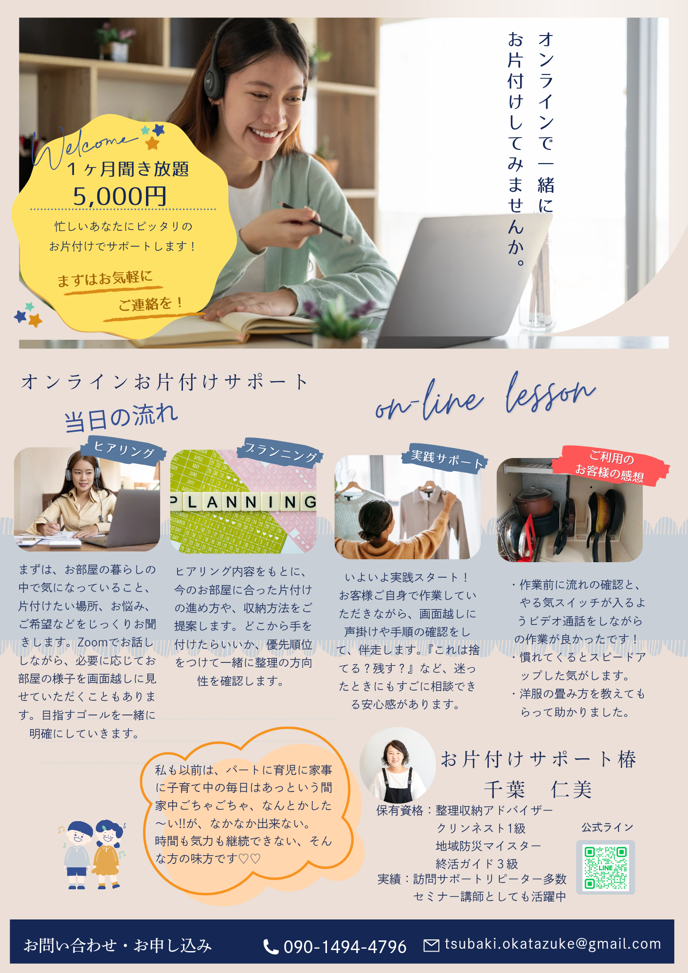 オンラインでのサポート 1ヶ月聞き放題5,000円