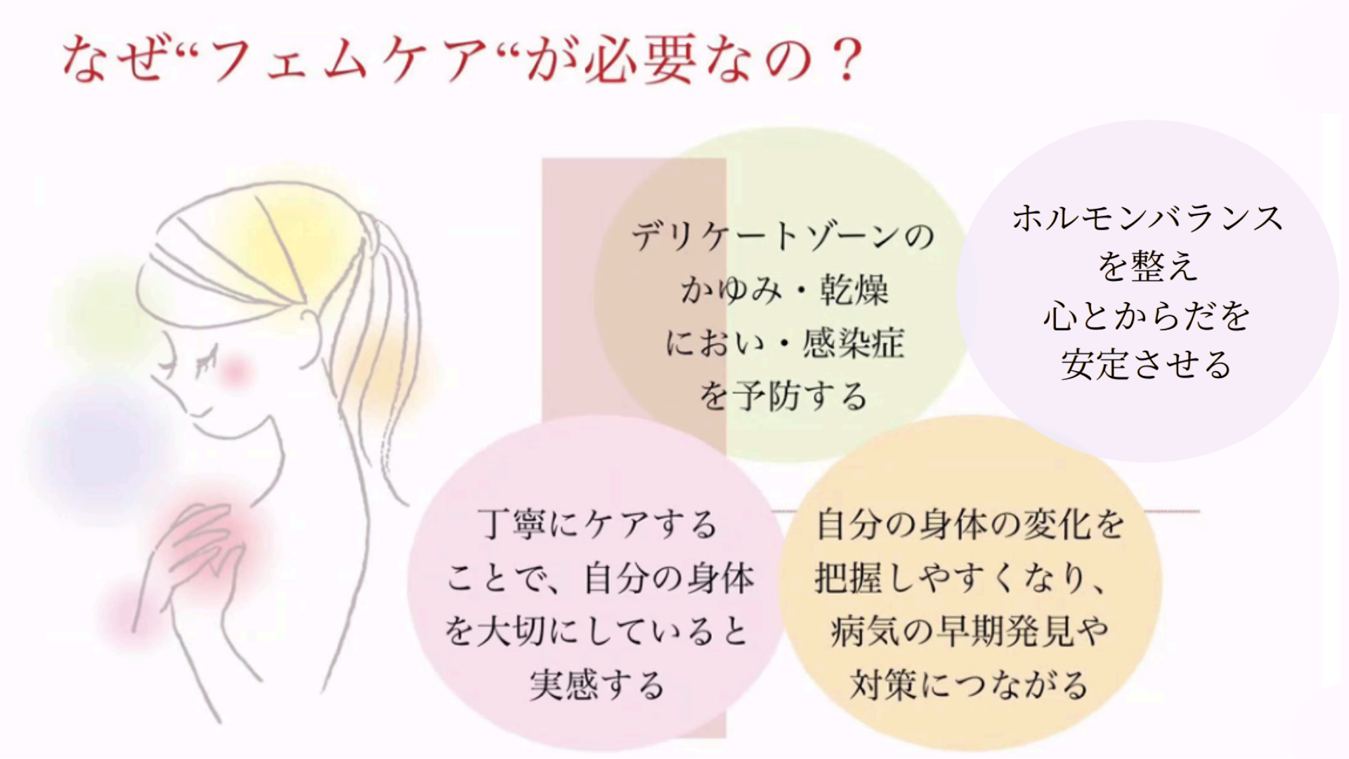 女性は月経・出産・更年期などホルモンバランスにより影響を受けやすいため、フェムケアは心身のサポートにおいて重要な役割を果たしています✨