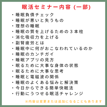 ・前に、睡眠セミナーや快眠プログラムを受講したことがある (その時からブラッシュアップしています!)