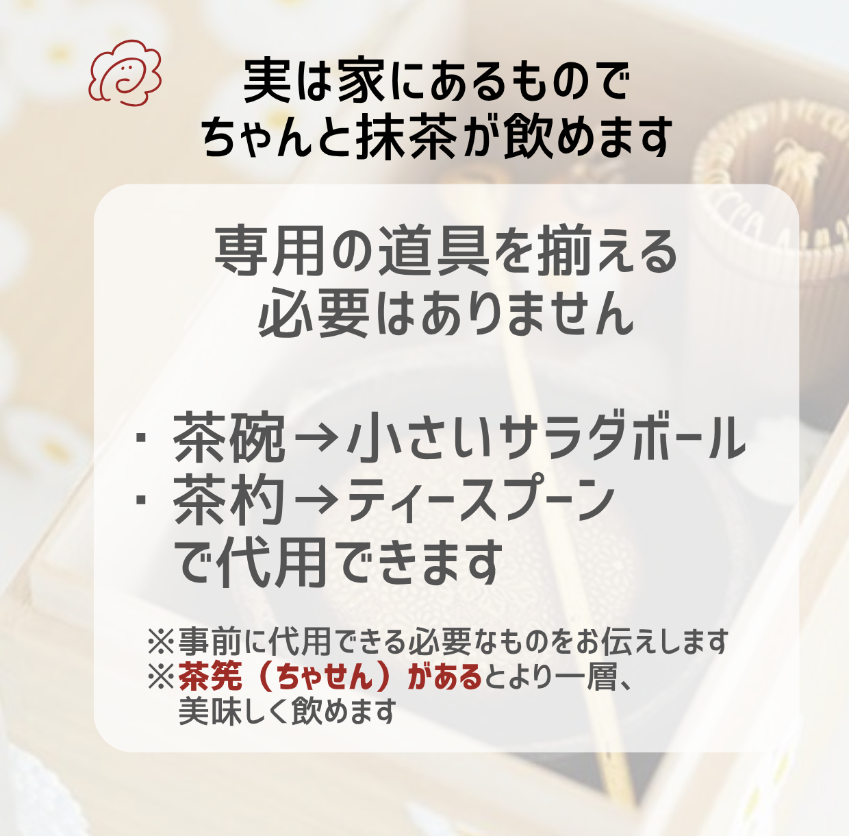 ・茶筅(抹茶を点てる専用の道具)をご用意またはご購入可能な方