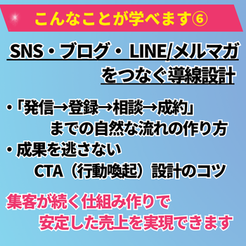 こうした不安や悩みを解消し、“自分らしいビジネスをWEBで安定して届ける”方法を体系的に学べるのがこの講座です。