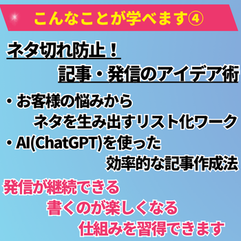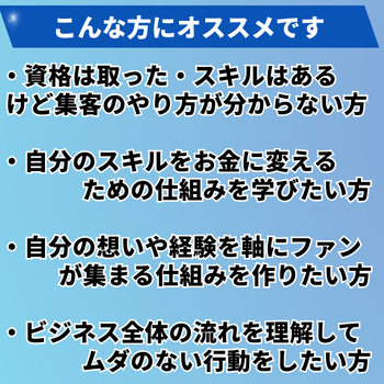 この経験をベースに、僕のように集客で試行錯誤している方、なかなか成果が出せていない方をサポートしたい!と思ってこの講座を開催しています。