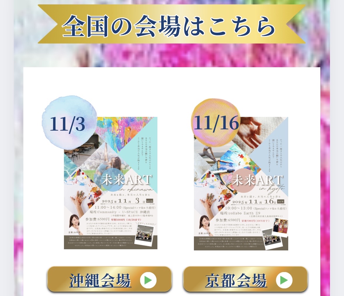 (リンク割引は私が単独で開催する沖縄、京都、札幌です!)各地域によってコラボする内容が変わります✨