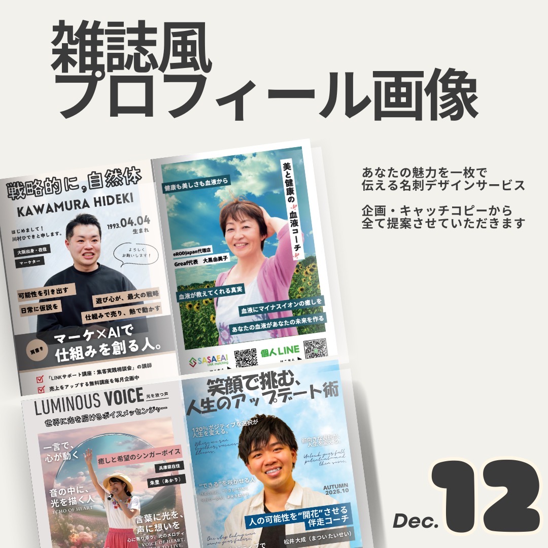 印象的な画像目立つことで、覚えてもらいやすくなる、集客&ブランディング効果のあるプロフィール画像をお作りします。