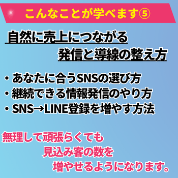 あなたに合う発信スタイルを見つけ、お客様との信頼を育てながら自然にお申し込みにつながる流れを作っていきます。