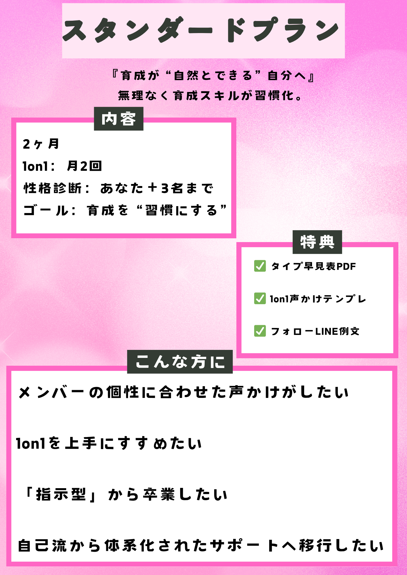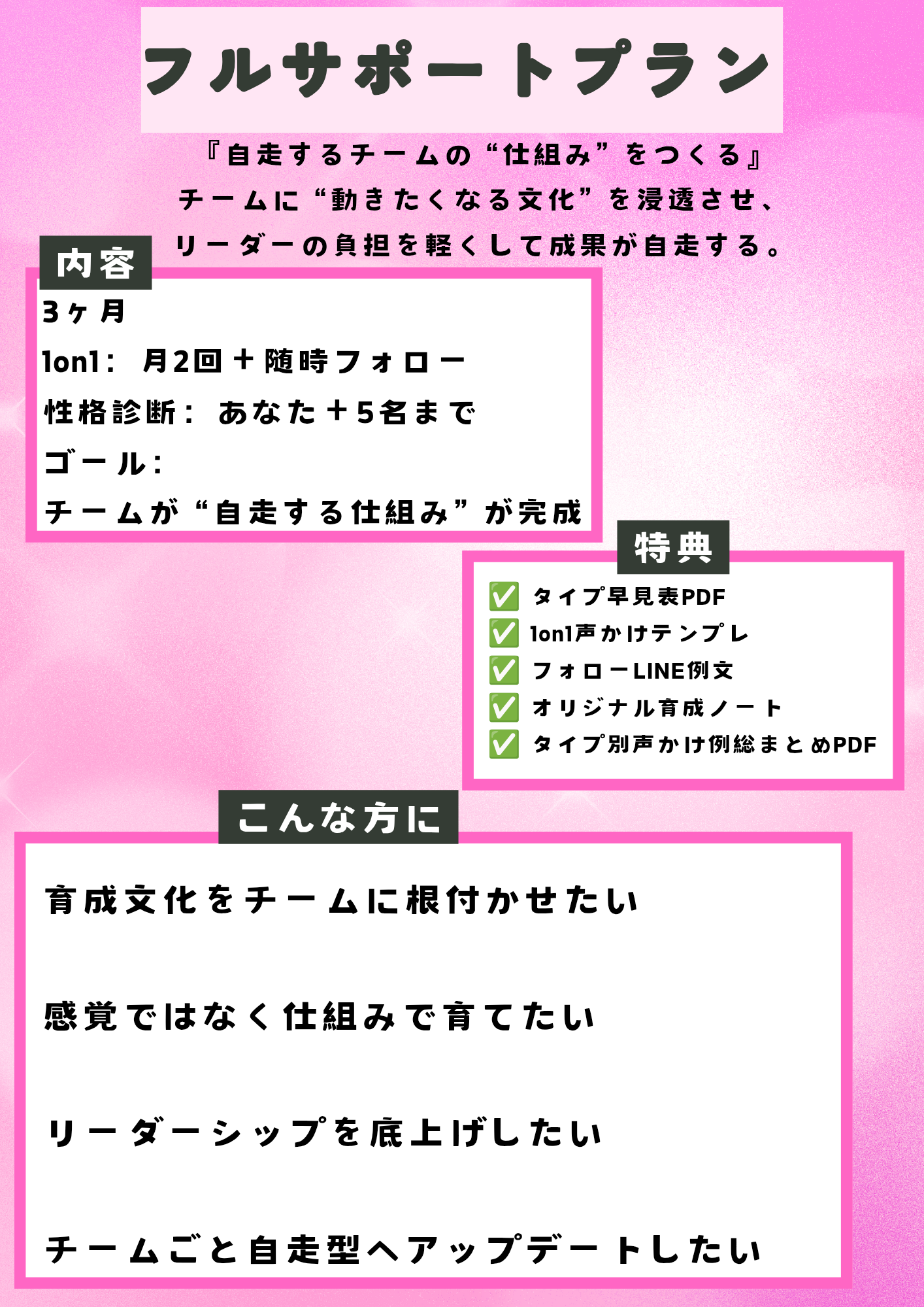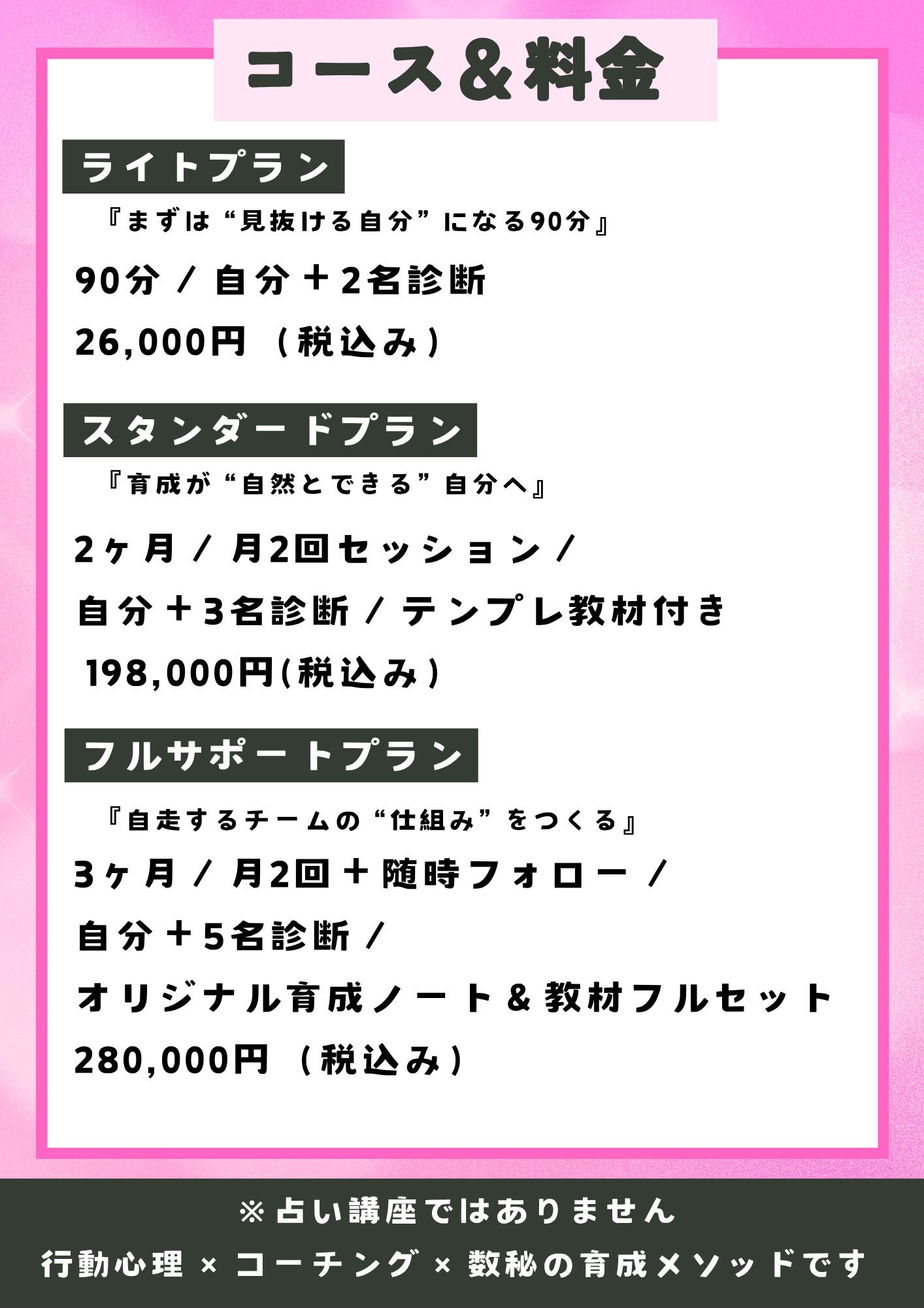 3ヶ月 1on1月2回+随時フォロー/あなた+5名診断/教材フルセット