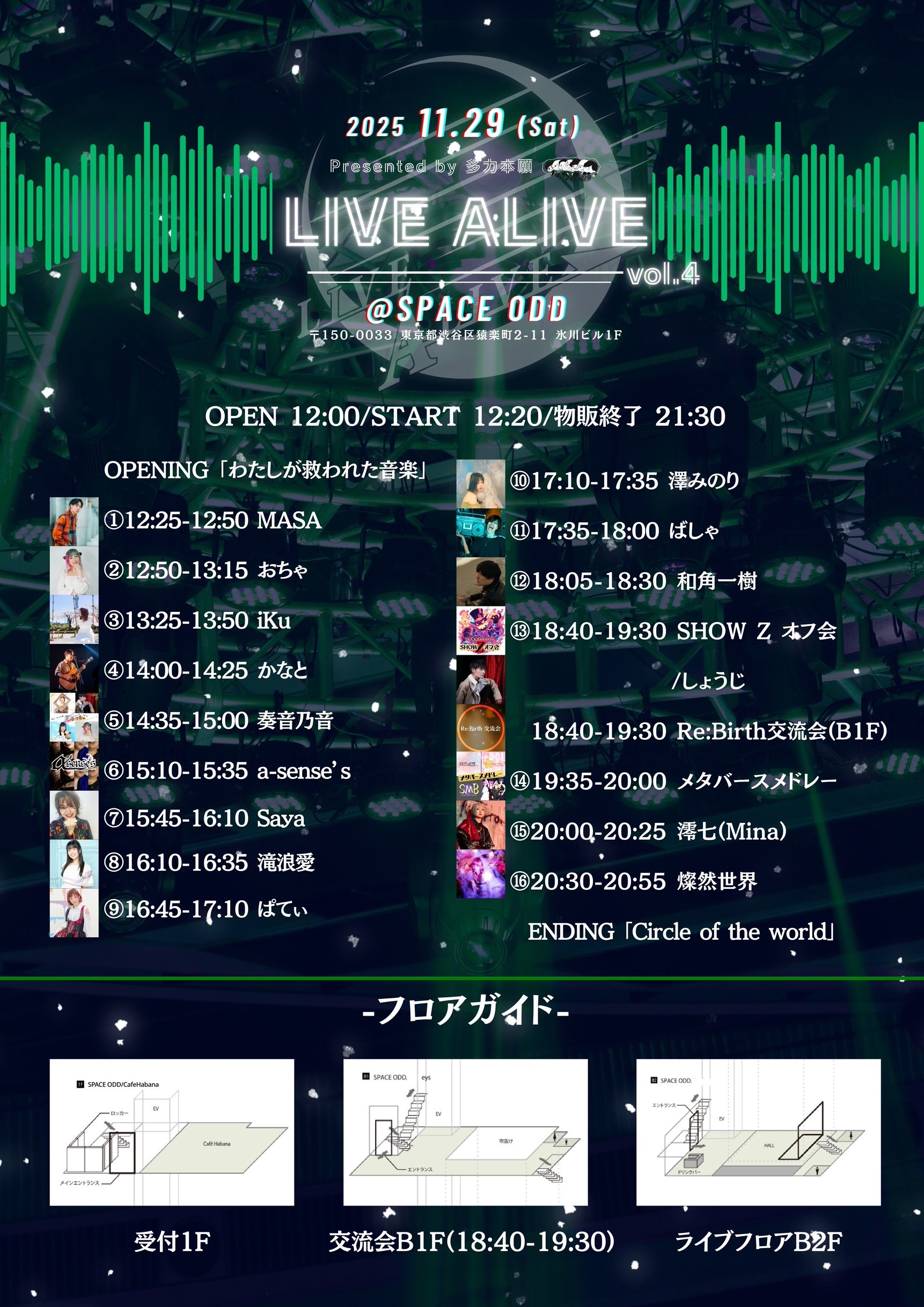 私のSNSになります。こちらから LIVE ALIVEで検索していただけると過去開催の様子が見られます。