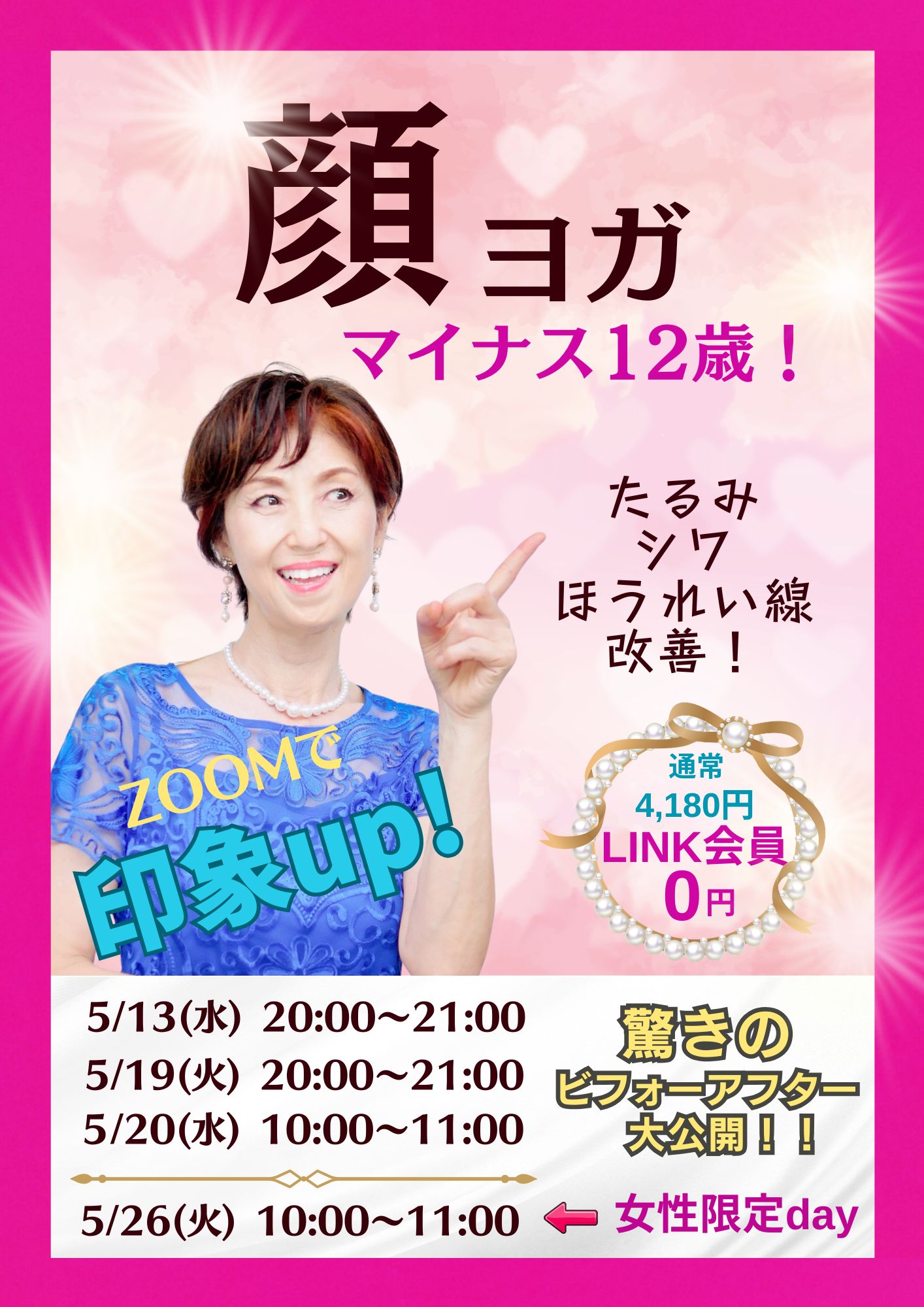 顔ヨガのプチレッスン&Zoom映えポイントで、驚きのビフォーアフター体験付き✨💕