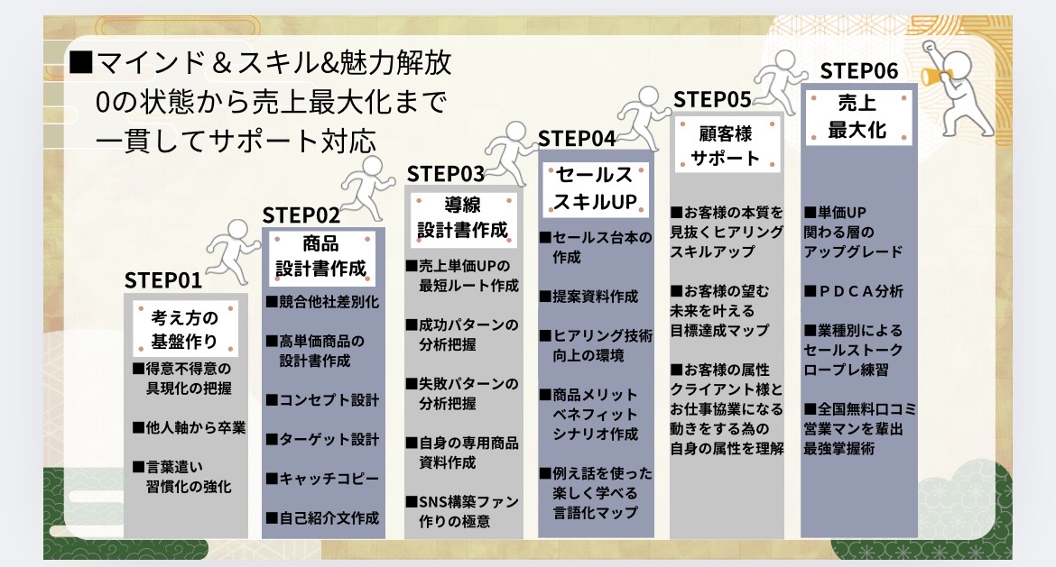【個別相談】▶️【契約】▶️【日程調整・課題】▶️【セッション(対面or zoom)】▶️【日々修正と実践】