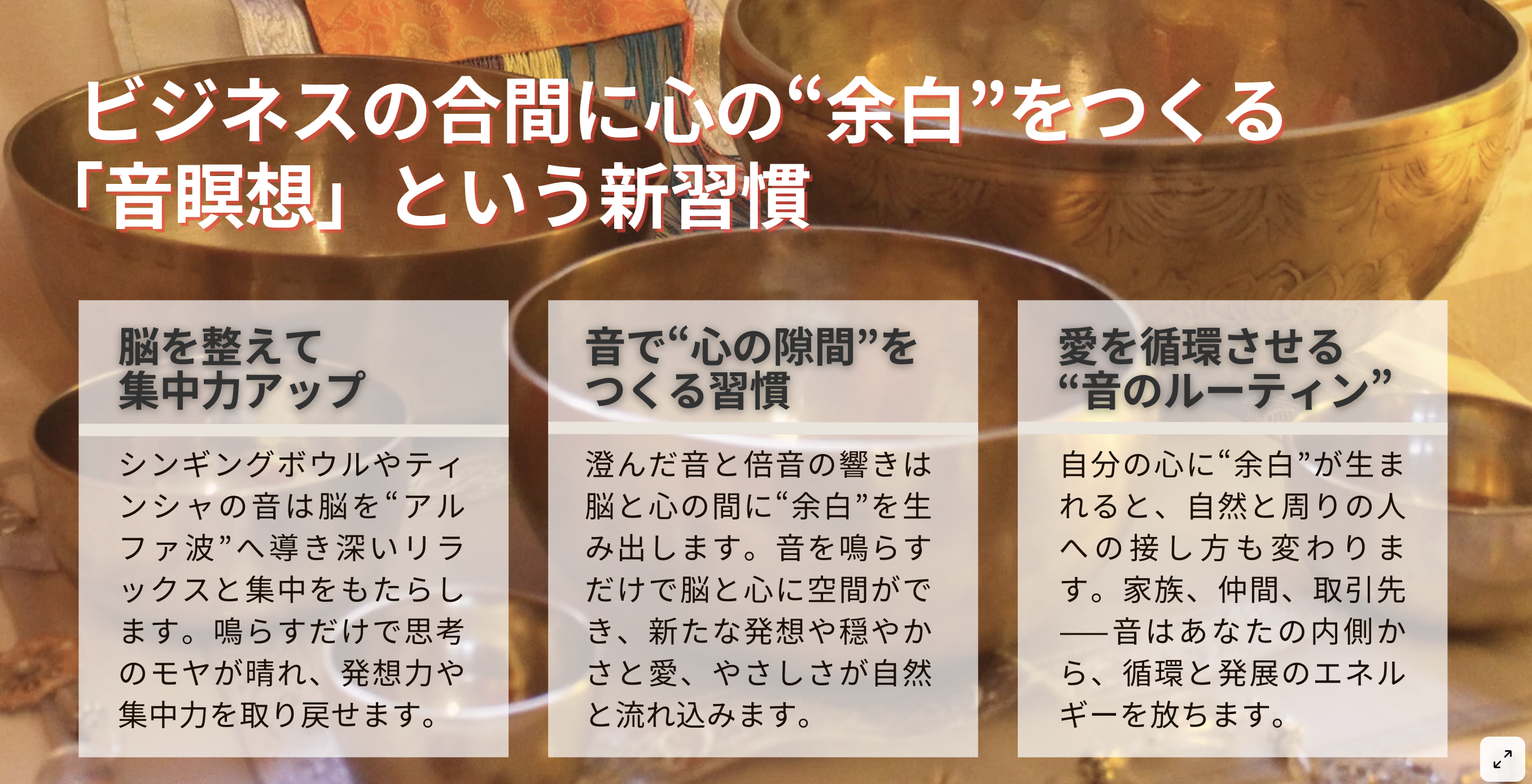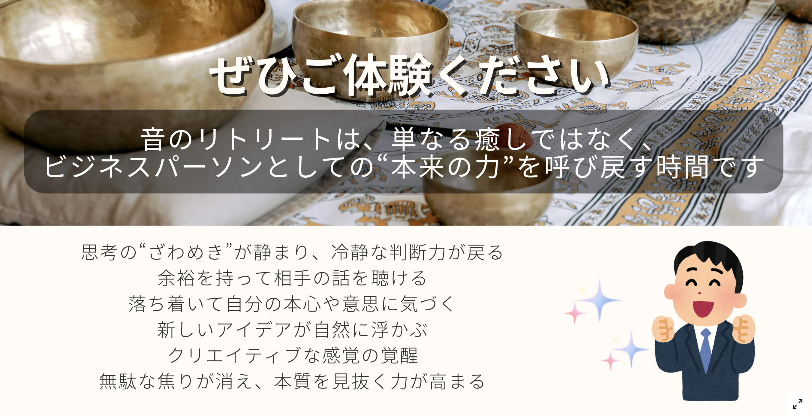 サウンドバスリトリートは「集中力と創造力を高めるツール」として注目。