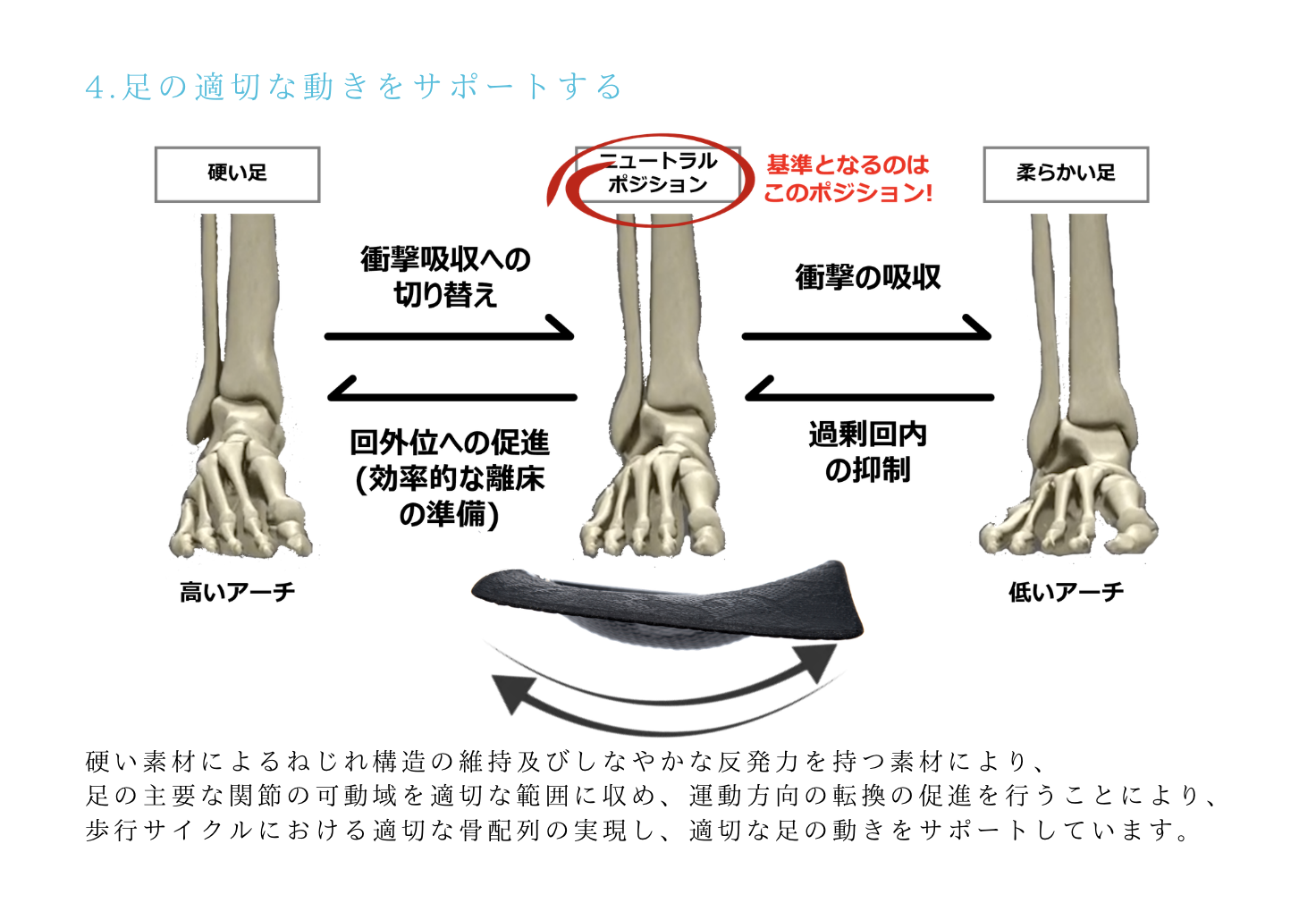安定した重心バランスをサポートし、ケガの予防・パフォーマンス向上に。
