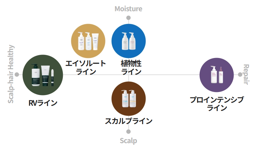 | シャンプー・コンディショナーだけでも5種類のラインナップです |