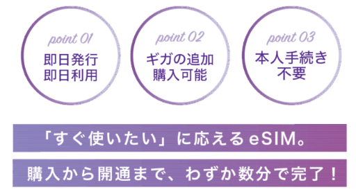 本人確認無しで契約が簡単。eSIMだからSIMカードの受け取り・郵送を待つ必要がない。