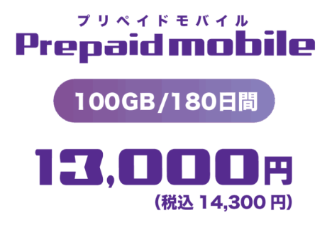 プリペイドモバイル(100GB / 180日)プランの特徴(事ベース)