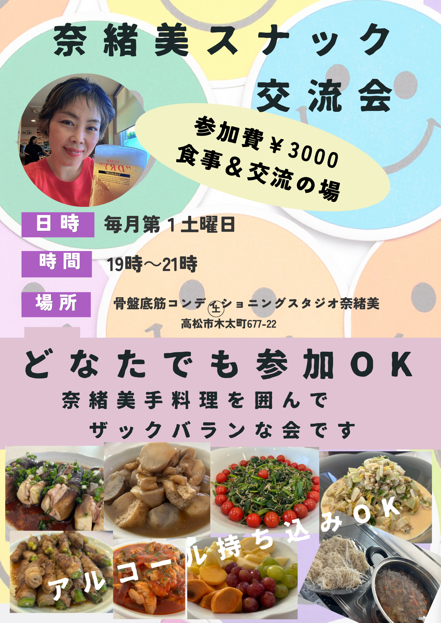 ・奈緒美スナック交流会→¥3000(奈緒美手作り料理食べ放題・ソフトドリンク※アルコールは各自持参)