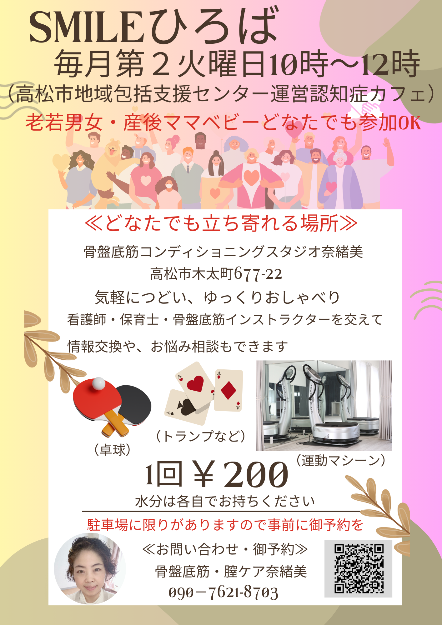 ・SMILEひろば→毎月第2火曜日10時~12時(老若男女問わず参加OK。主に地域高齢者・産後ママ子のふれあい広場、居場所作り)