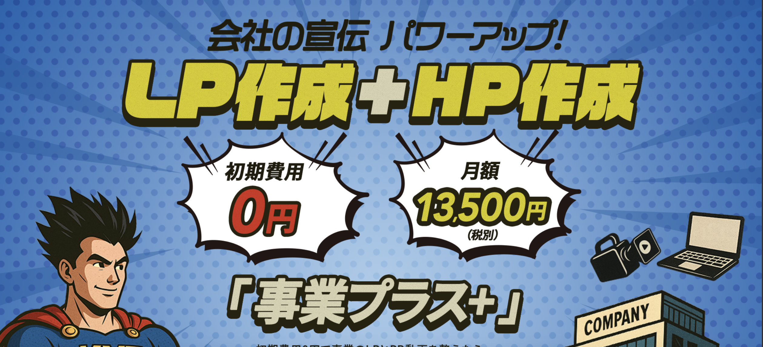HPまたはLPを業界最安帯で提供初期費用無料。月額13500円(税別)の上、契約期間の縛りは1年のみ
