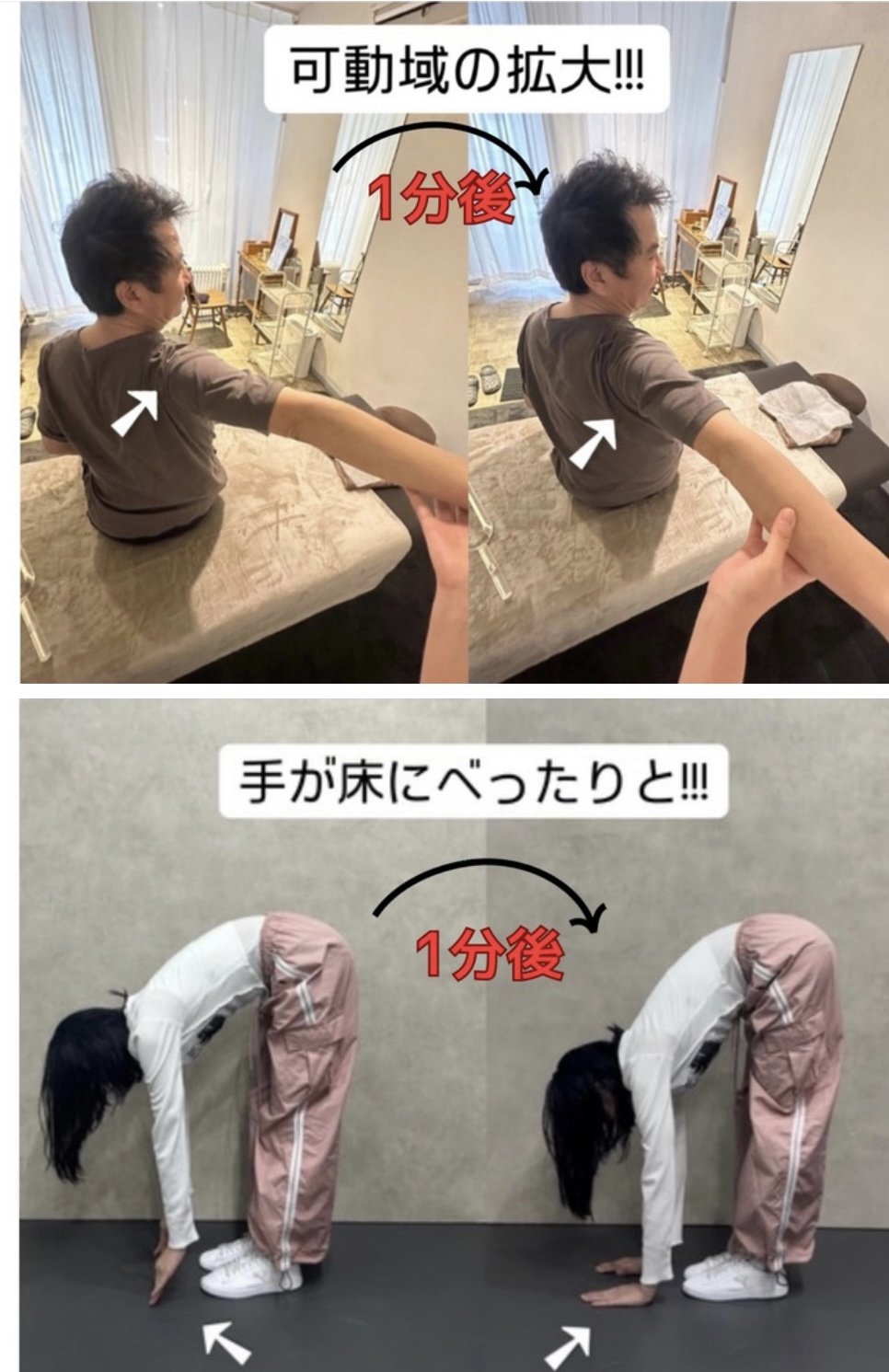 痛めて上がらなくなった腕が1回の施術で上がるようになった。