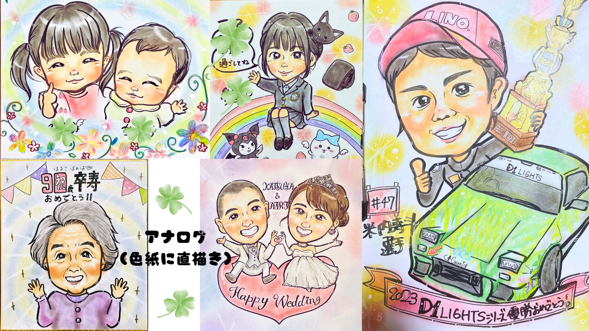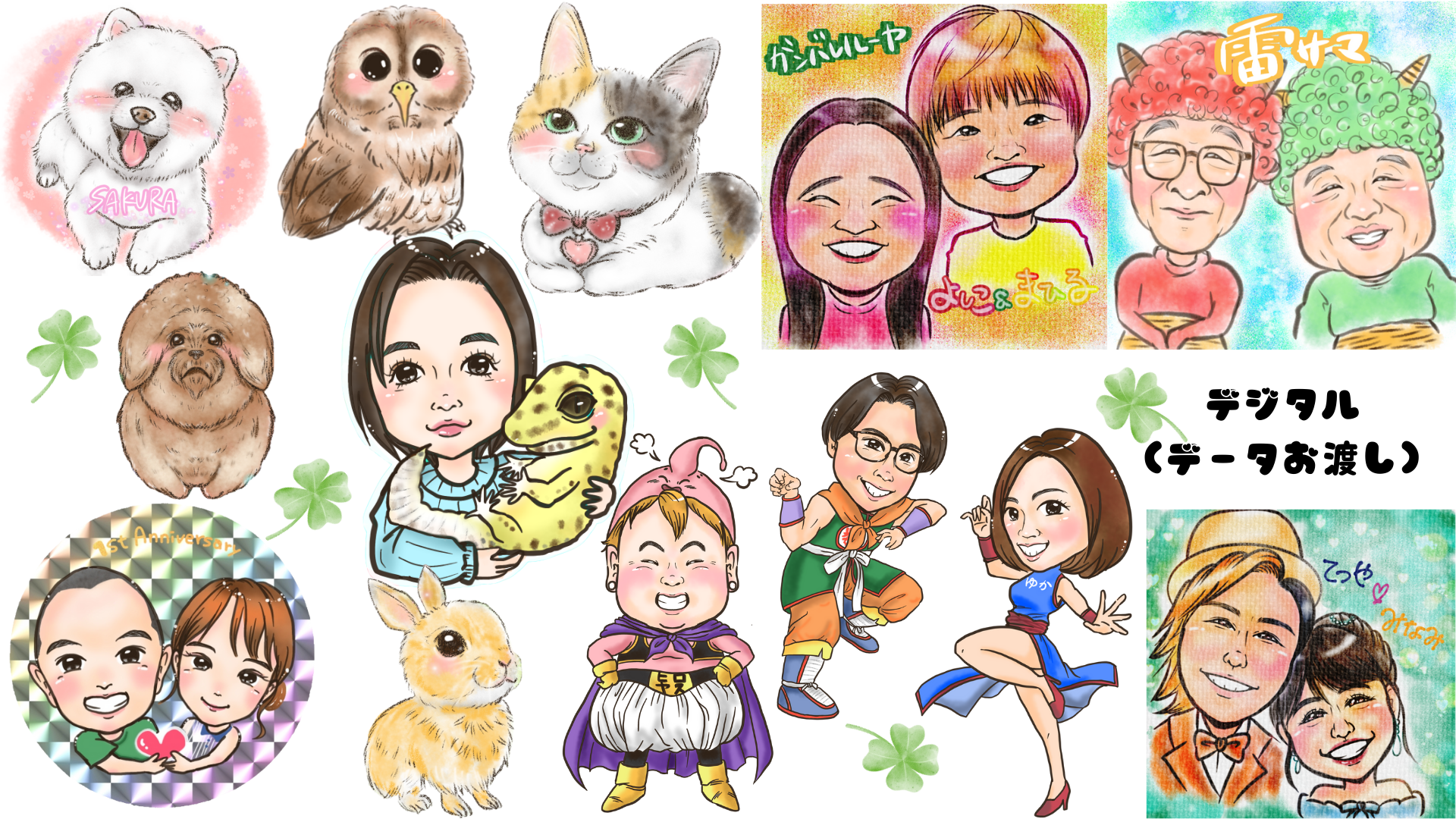 FacebookまたはInstagram、公式LINEから似顔絵希望とメッセージを送ってください。