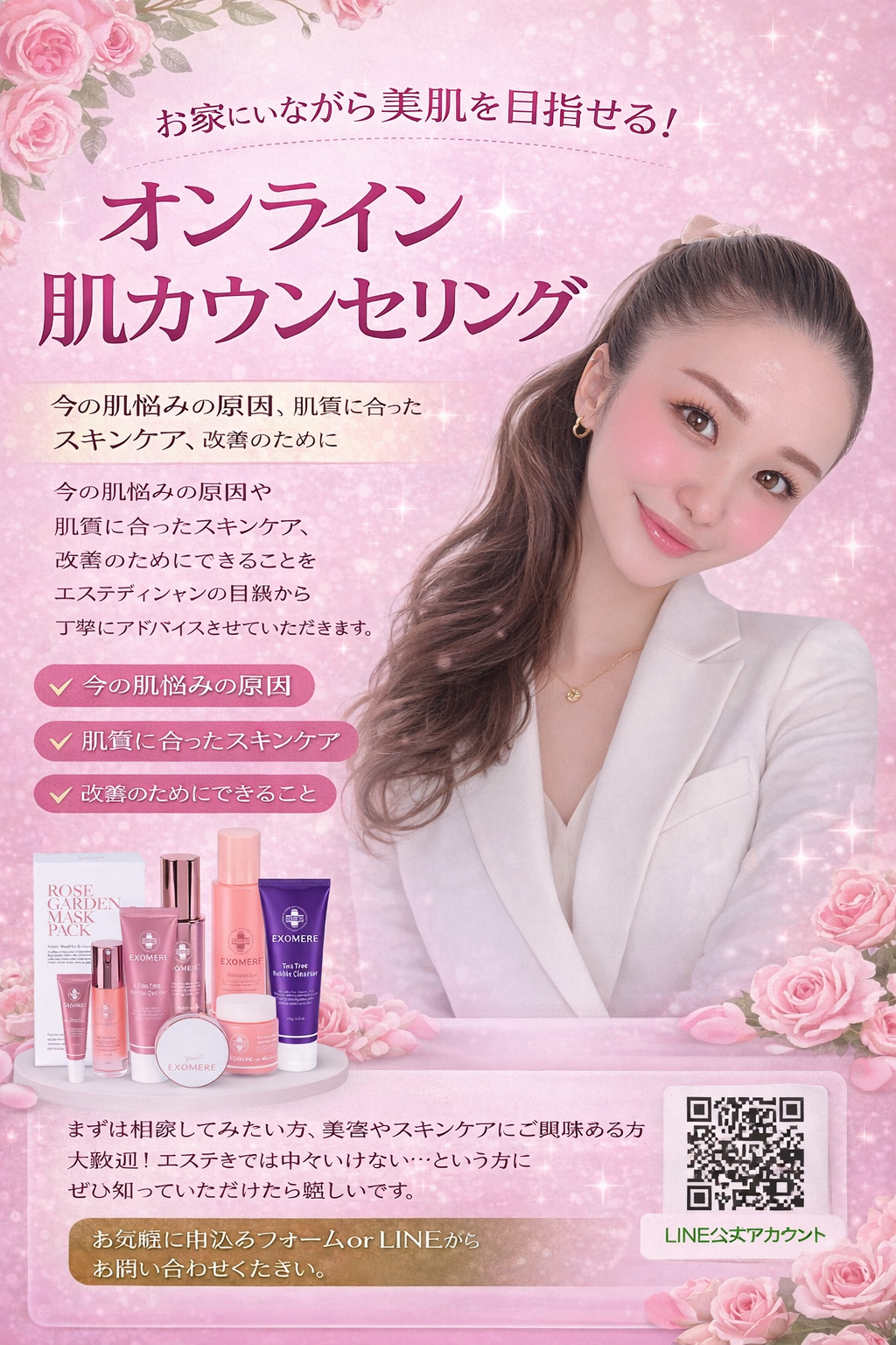 内外美容に基づいたオンライン肌改善サポート✨