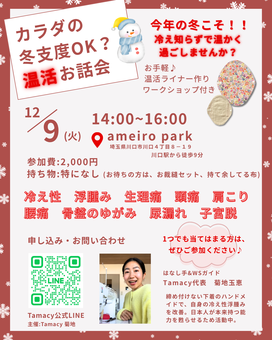埼玉県川口市で、女性対象の温活のイベント♨️を開催します♪