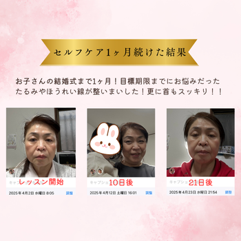 お顔のセルフケアと心の解放を通して、本当の笑顔を育てていきます。