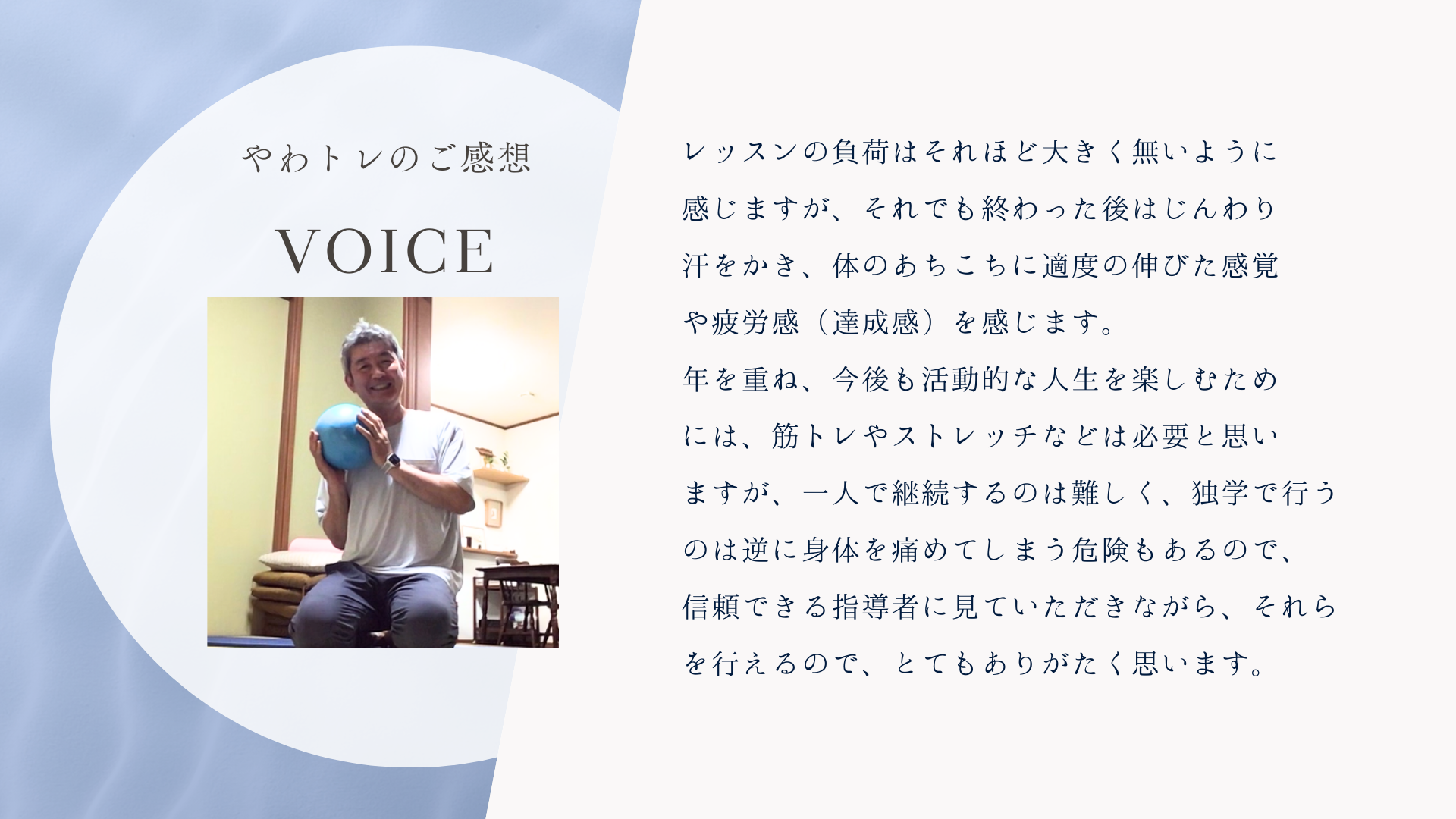 生理学のプチ講座・やわトレレッスンを受けて頂きます。