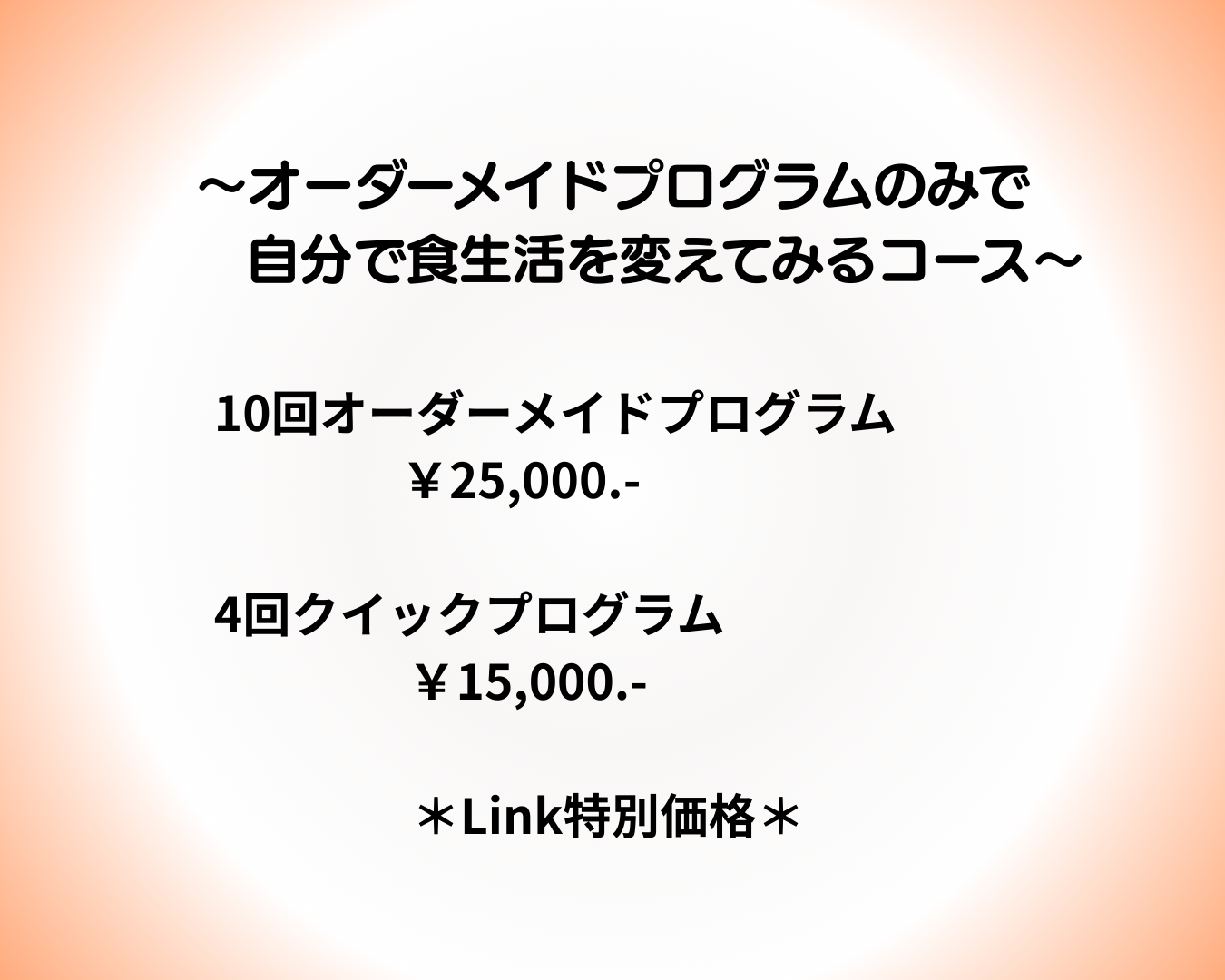 ◇オーダーメイドプログラムのみで自分で食生活を変えてみるコース 10回オーダーメイドプログラム¥25,000 / 4回クイックプログラム¥15,000