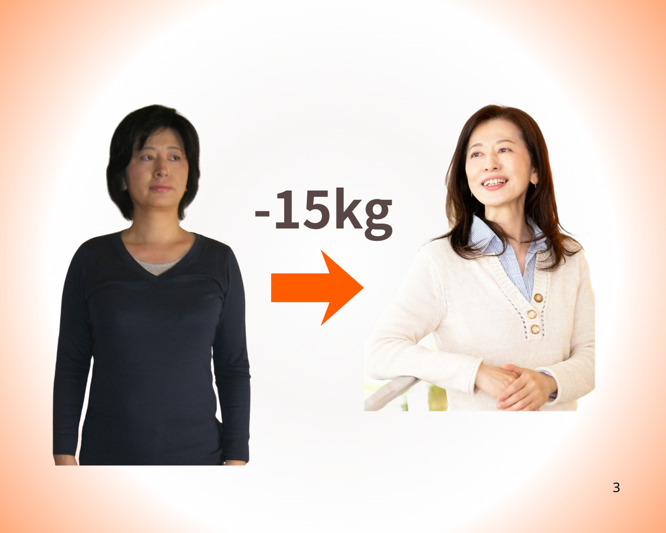 ◇50代女性 -15kgし、14年キープだけでなく、疲れにくくなり、気持ちも前向きに。髪質や肌がきれいになった