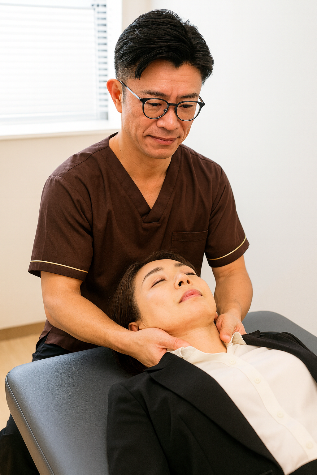 医療系国家資格である理学療法士の資格を持つスタッフが慢性的な肩・首こりの改善に向けたストレッチ整体を実施します。