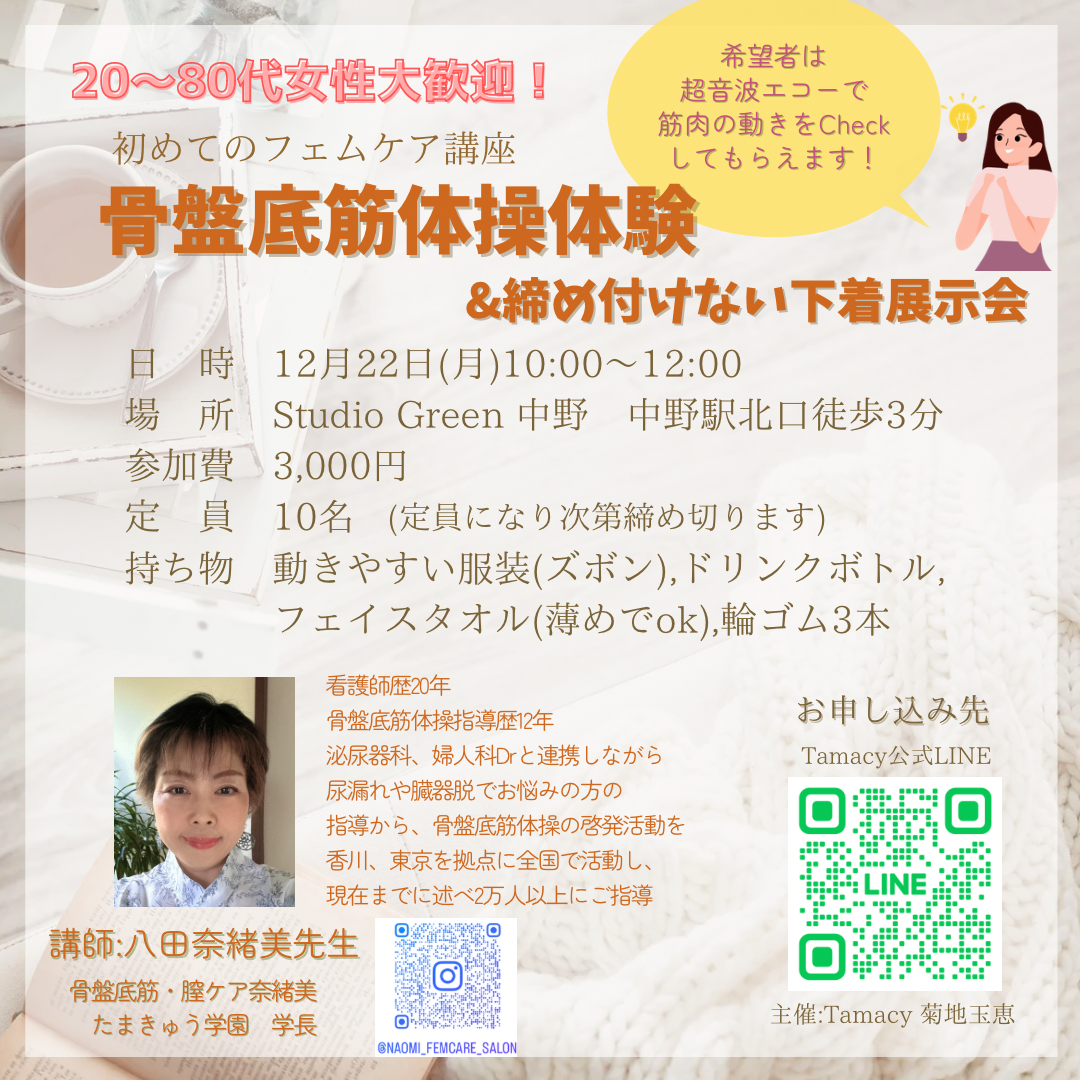 【骨盤底筋体操体験&Tamacy展示会のお知らせ】