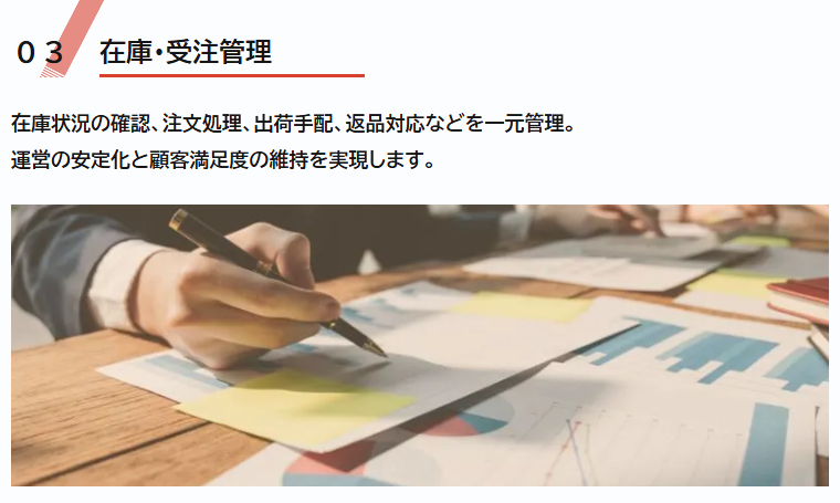 商品登録・ページ制作・在庫管理・受注処理・広告運用・顧客対応など、ショップ運営に必要な幅広い業務を専門スタッフが代行します。