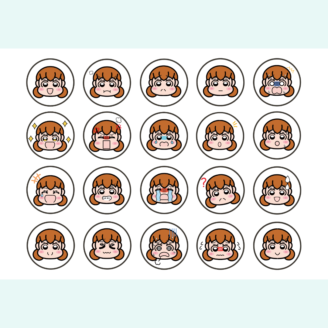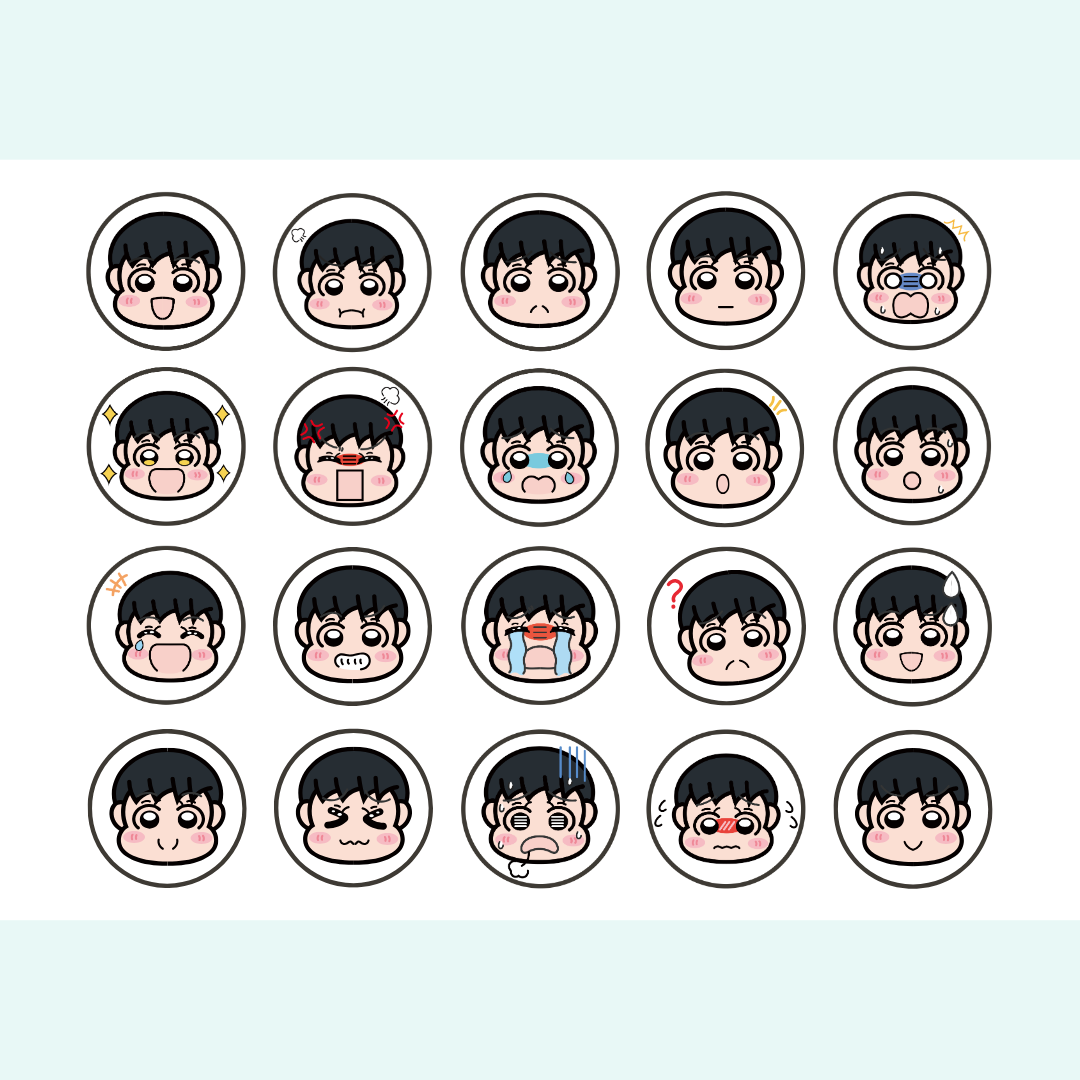 喜・怒・哀・楽 のシールデータ(男の子・女の子それぞれ20個)