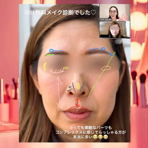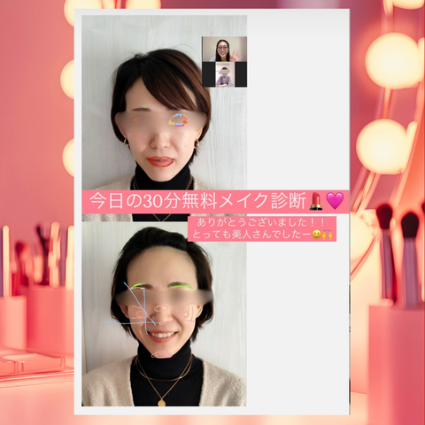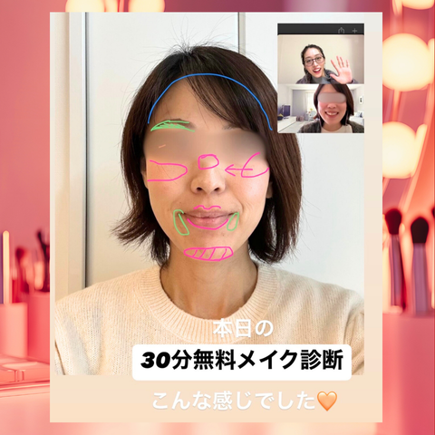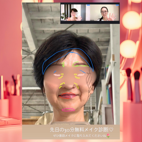 ・元美容部員でメイクに自信はあったのですが、加齢につれて自分に合うメイクがわからなくなっていましたが、図解をしながら丁寧に教えてくださるので、すぐに実践できましたし、手持ちのアイテムの活用方法も教えていただけて大満足です🙆♀️