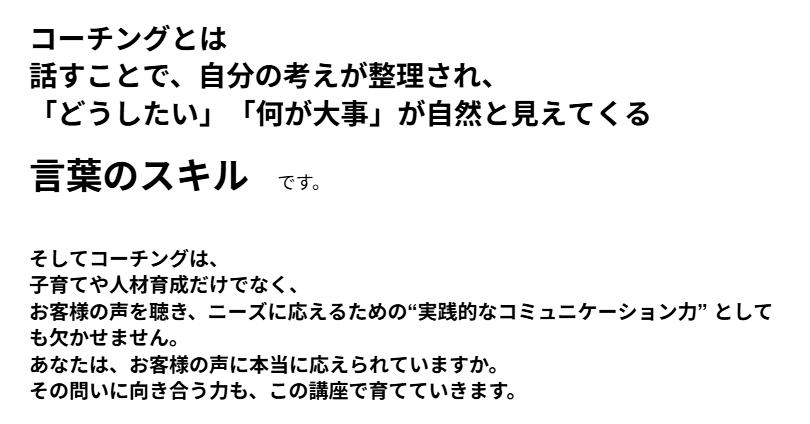 コーチングは接客・販売・相談業務にも直結する“実践スキル”です。